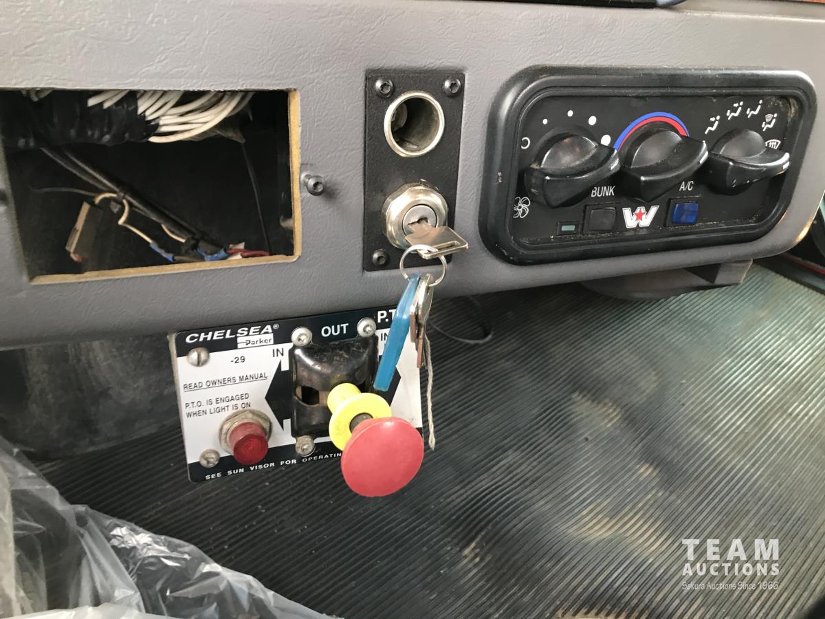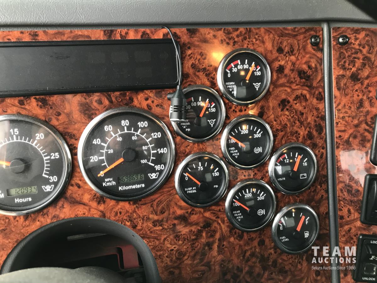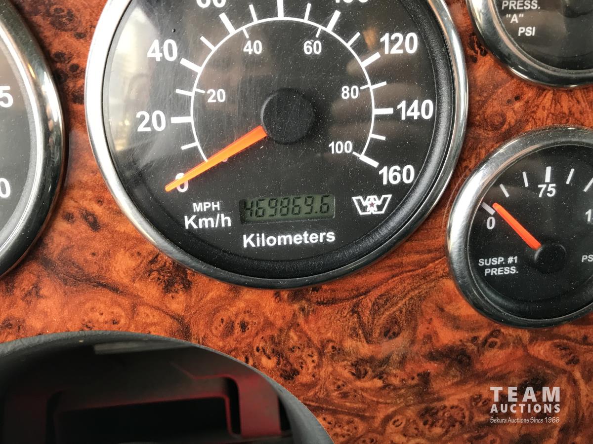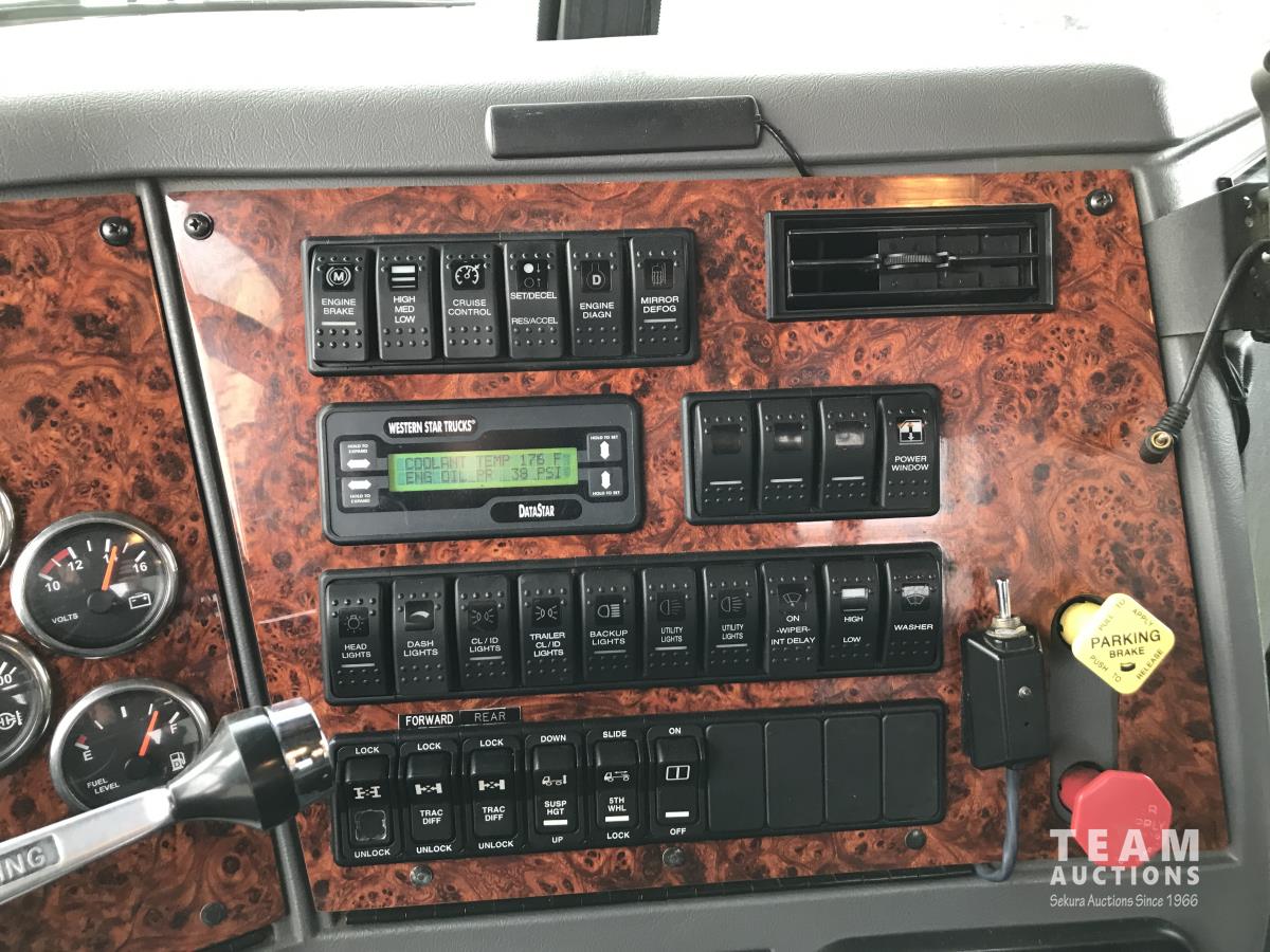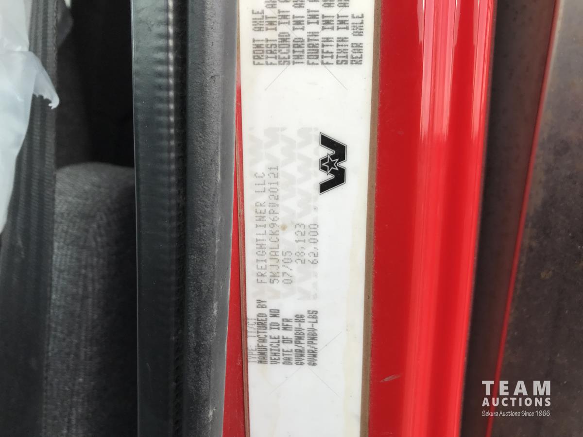Detroit SERIES 60 14.0 L L6 515 HP diesel engine, engine brake, engine block heater, Eaton Fuller 18 speed manual transmission, mid rise 32 inch sleeper, A/C, cruise control, air ride driver seat, stereo, chain holders, air ride suspension, 16,000 lb front axle, 46,000 lb rear axles, 3 way diff locks, 231 inch WB, all aluminum wheels, 385/65R22.5 front tires, 11R24.5 rear tires