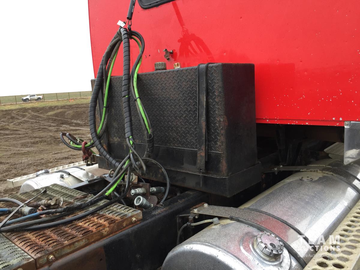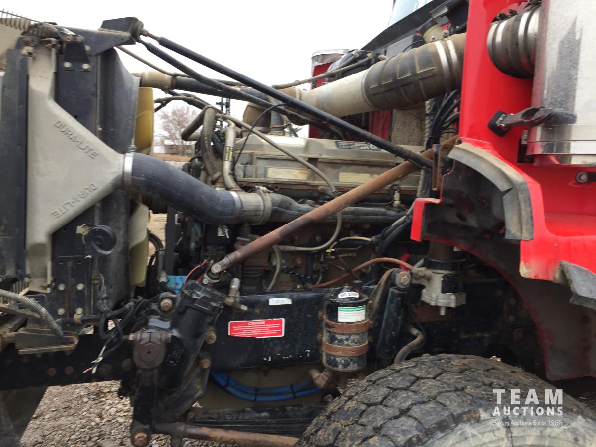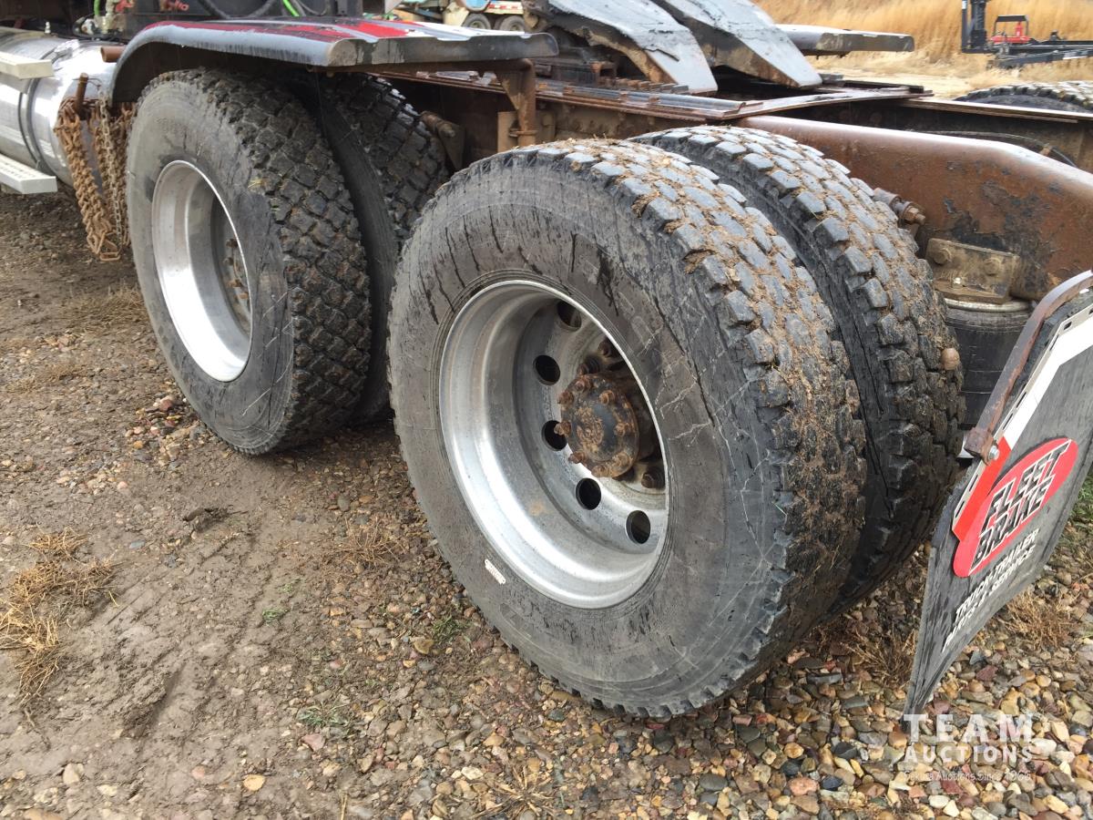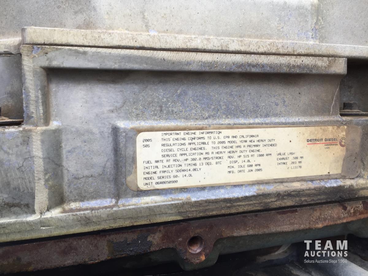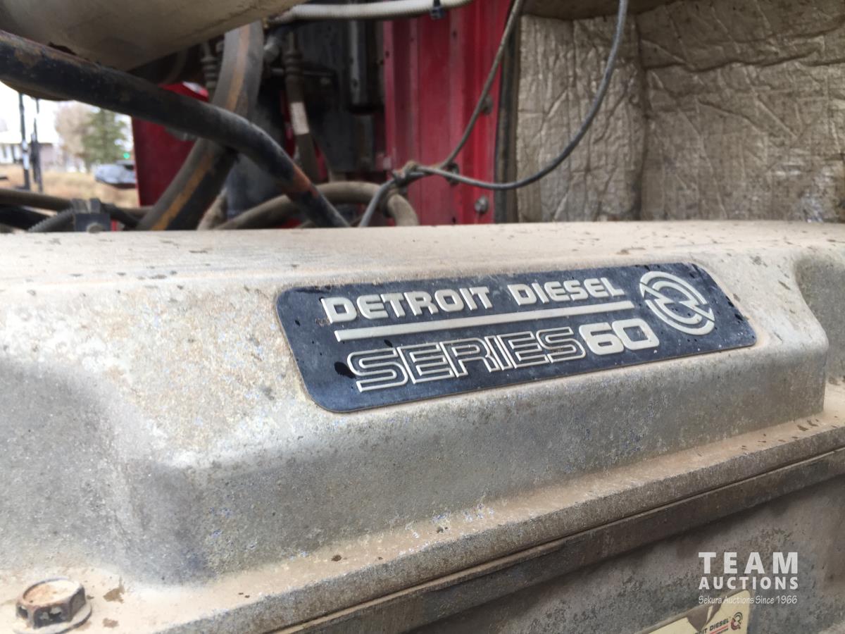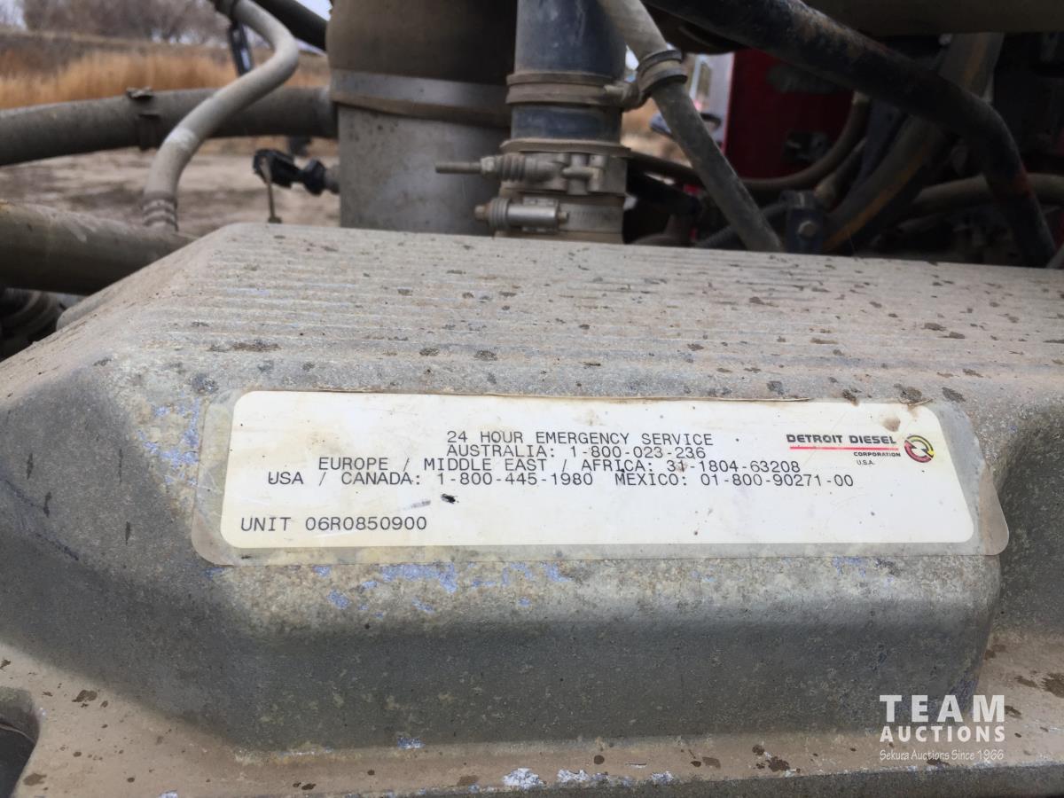 Detroit SERIES 60 14.0 L L6 515 HP diesel engine, engine brake, engine block heater, Eaton Fuller 18 speed manual transmission, mid rise 32 inch sleeper, A/C, cruise control, air ride driver seat, stereo, hydraulic wet kit, chain holders, air ride suspension, 16,000 lb front axle, 46,000 lb rear axles, 3 way diff locks, 4.30 ratio, 227 inch WB, all aluminum wheels, 385/65R22.5 front tires, 11R24.5 rear tires