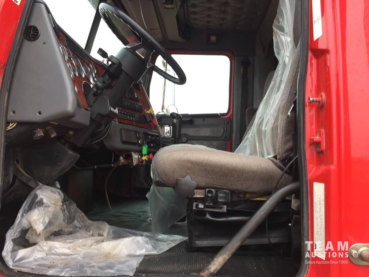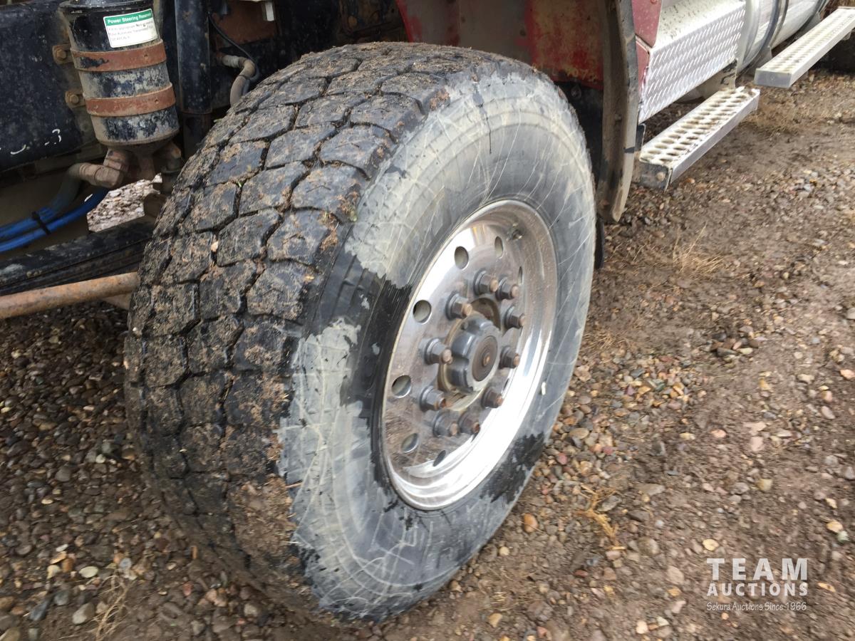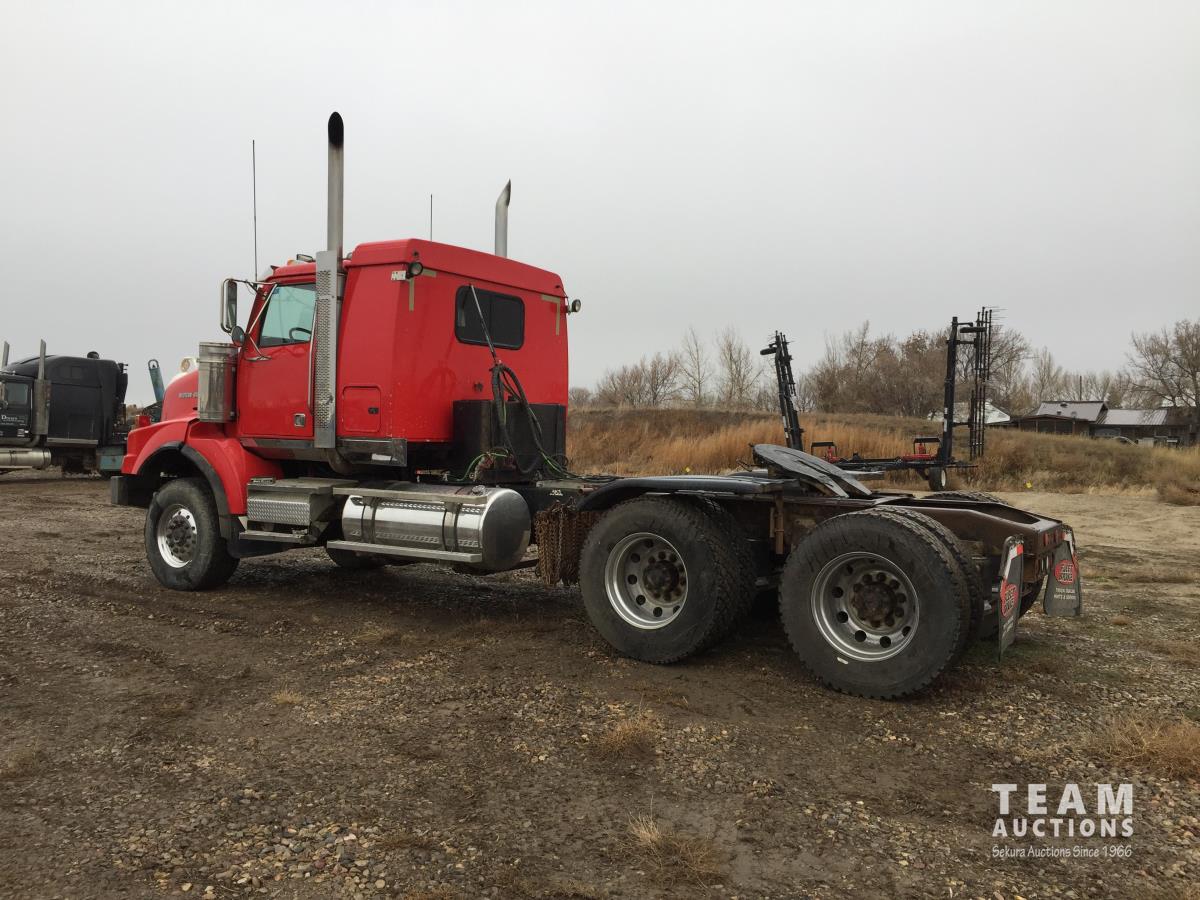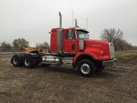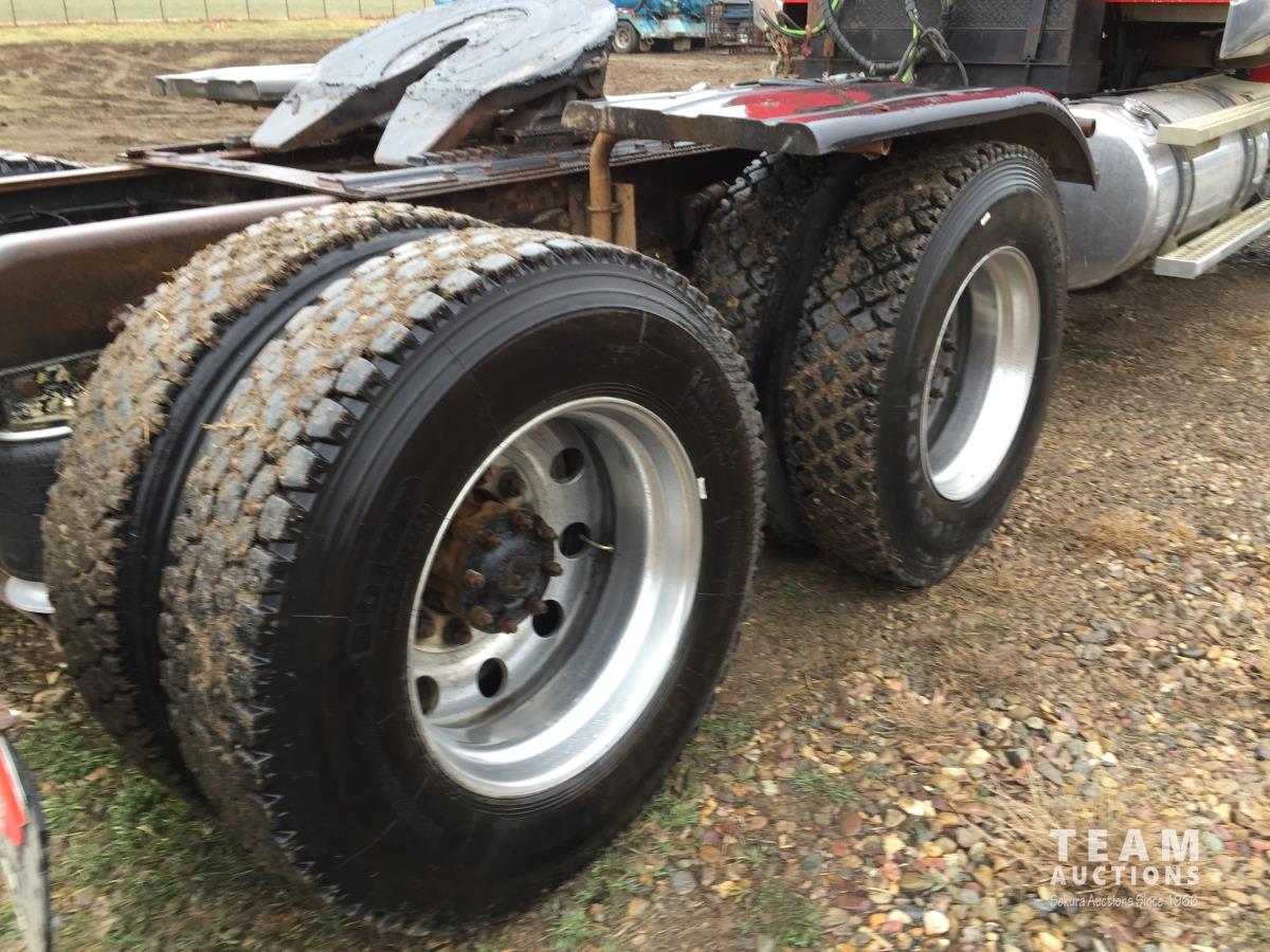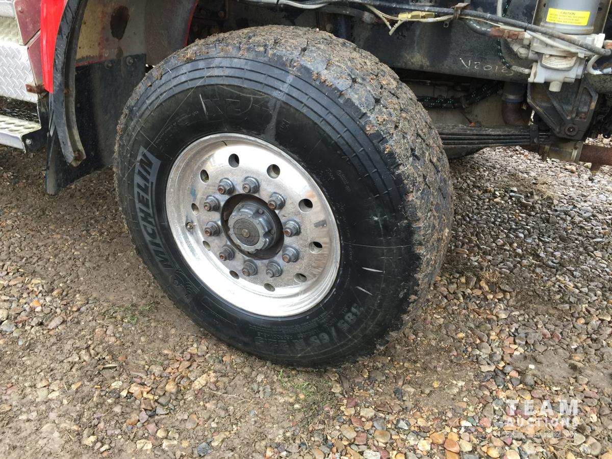 Detroit SERIES 60 14.0 L L6 515 HP diesel engine, engine brake, engine block heater, Eaton Fuller 18 speed manual transmission, mid rise 32 inch sleeper, A/C, cruise control, air ride driver seat, stereo, hydraulic wet kit, chain holders, air ride suspension, 16,000 lb front axle, 46,000 lb rear axles, 3 way diff locks, 4.30 ratio, 227 inch WB, all aluminum wheels, 385/65R22.5 front tires, 11R24.5 rear tires
