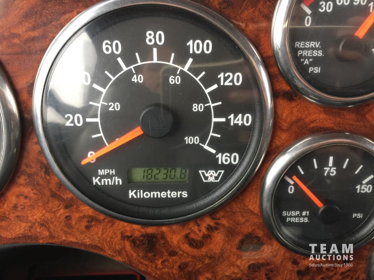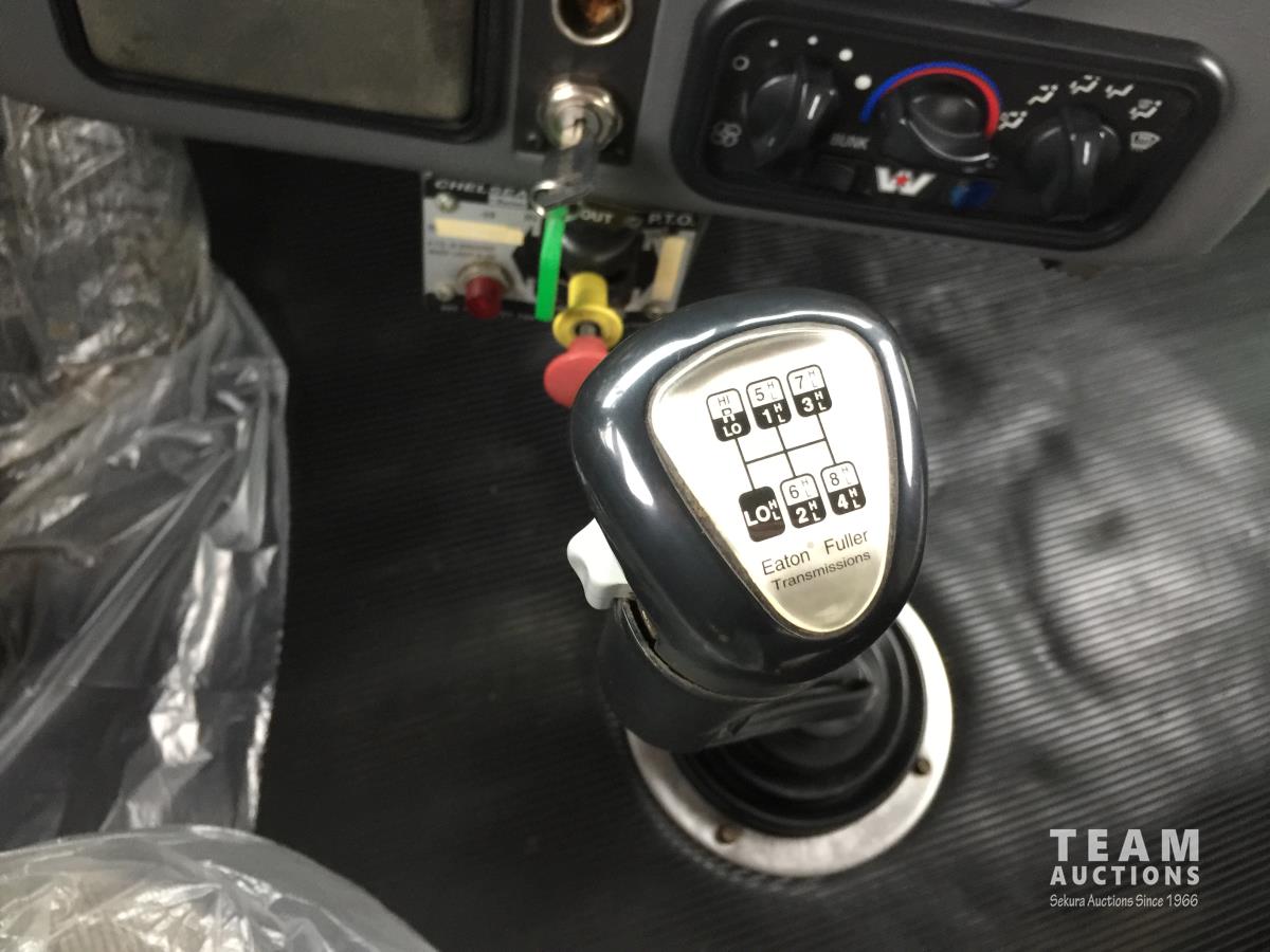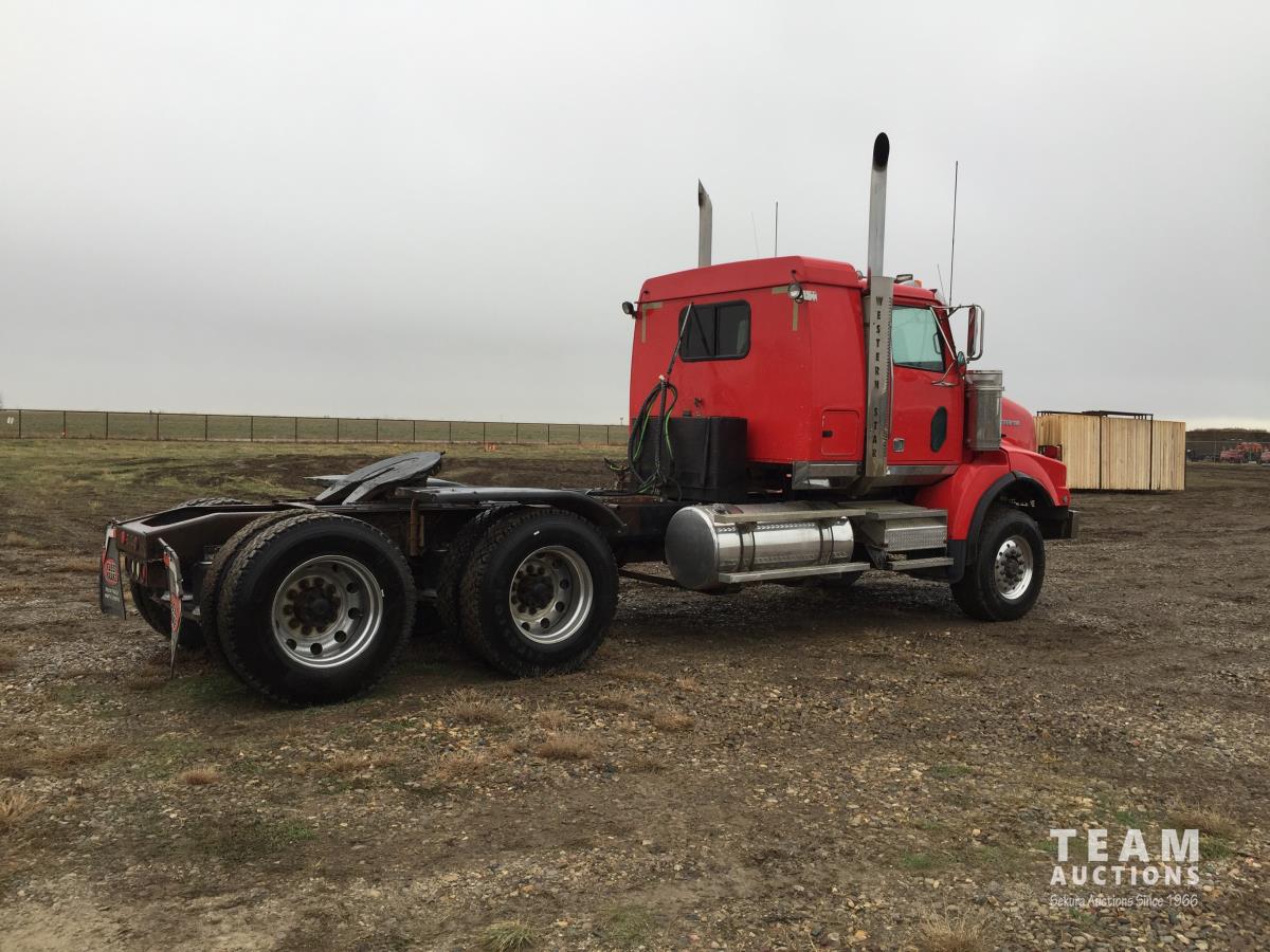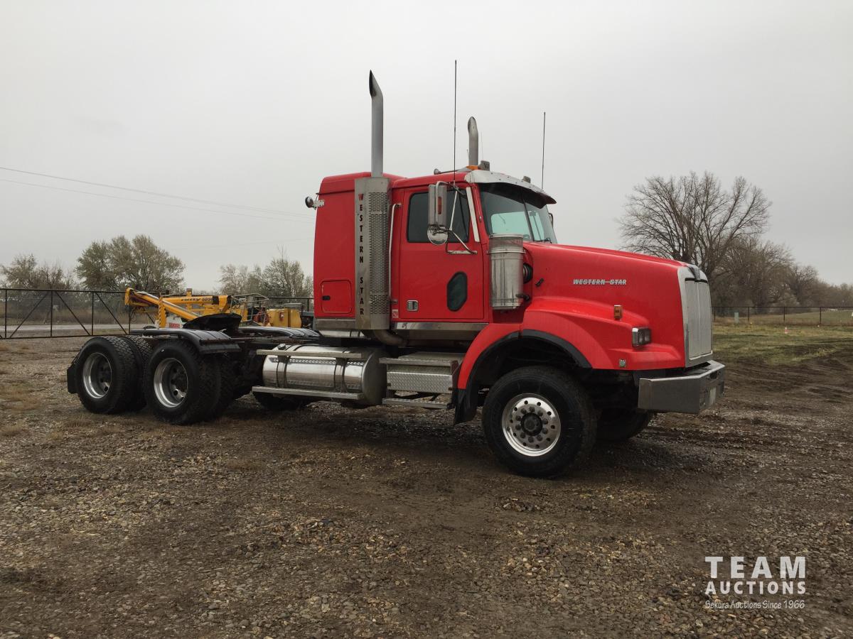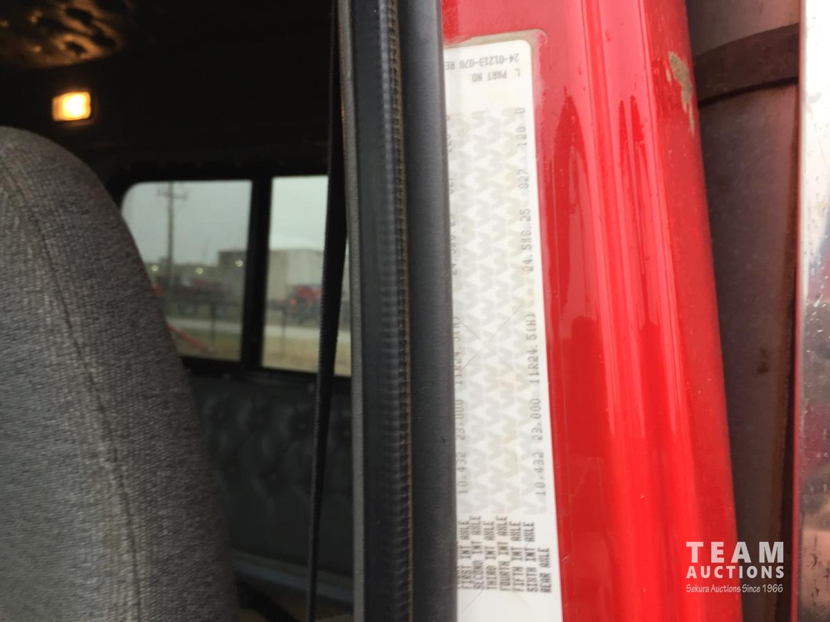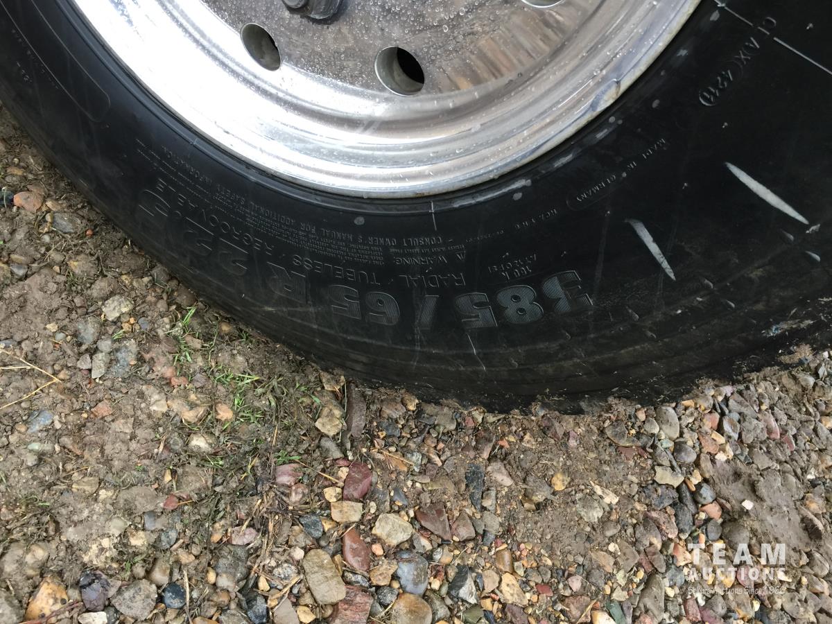 Detroit SERIES 60 14.0 L L6 515 HP diesel engine, engine brake, engine block heater, Eaton Fuller 18 speed manual transmission, mid rise 32 inch sleeper, A/C, cruise control, air ride driver seat, stereo, hydraulic wet kit, chain holders, air ride suspension, 16,000 lb front axle, 46,000 lb rear axles, 3 way diff locks, 4.30 ratio, 227 inch WB, all aluminum wheels, 385/65R22.5 front tires, 11R24.5 rear tires