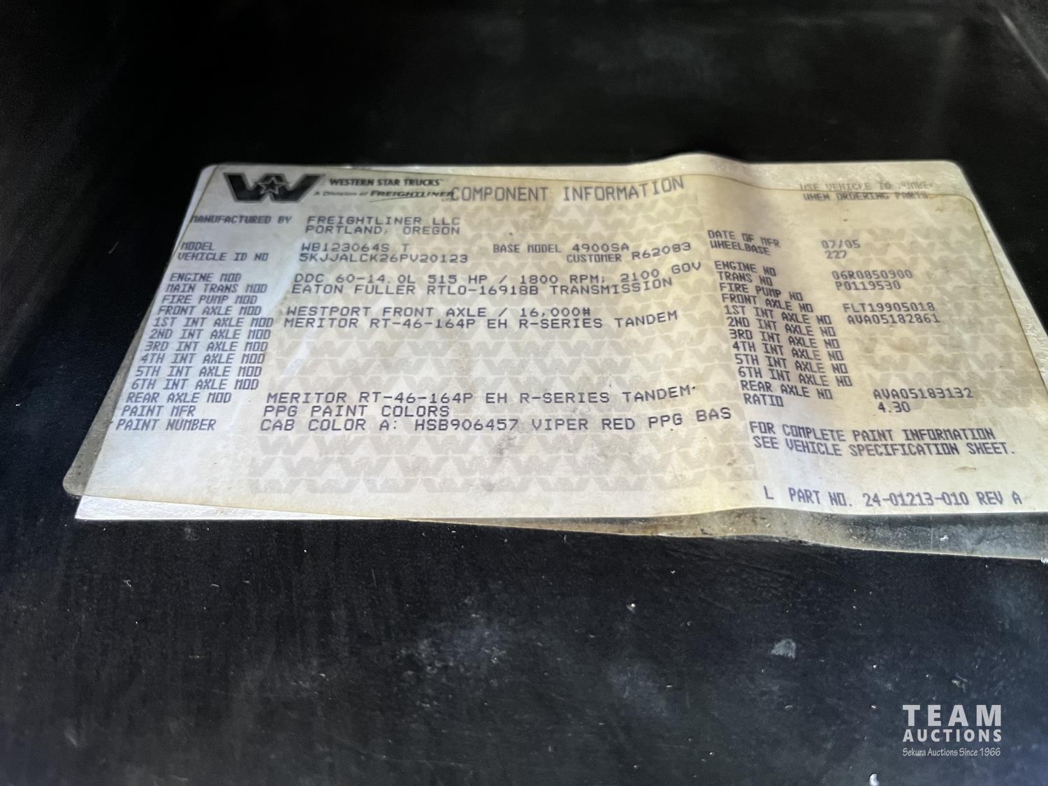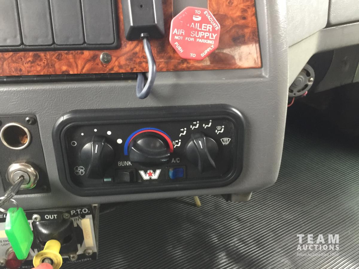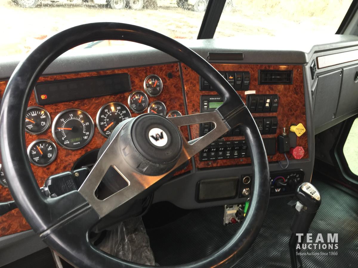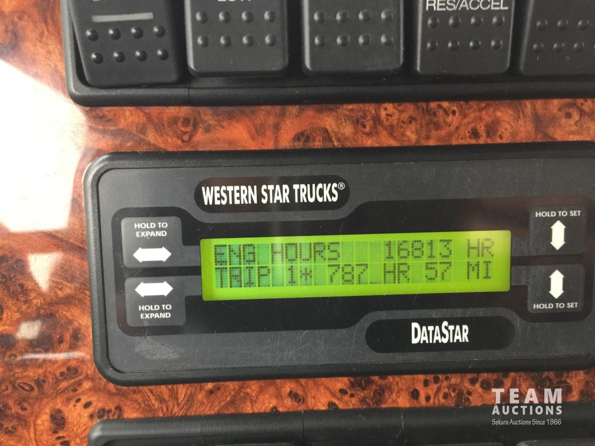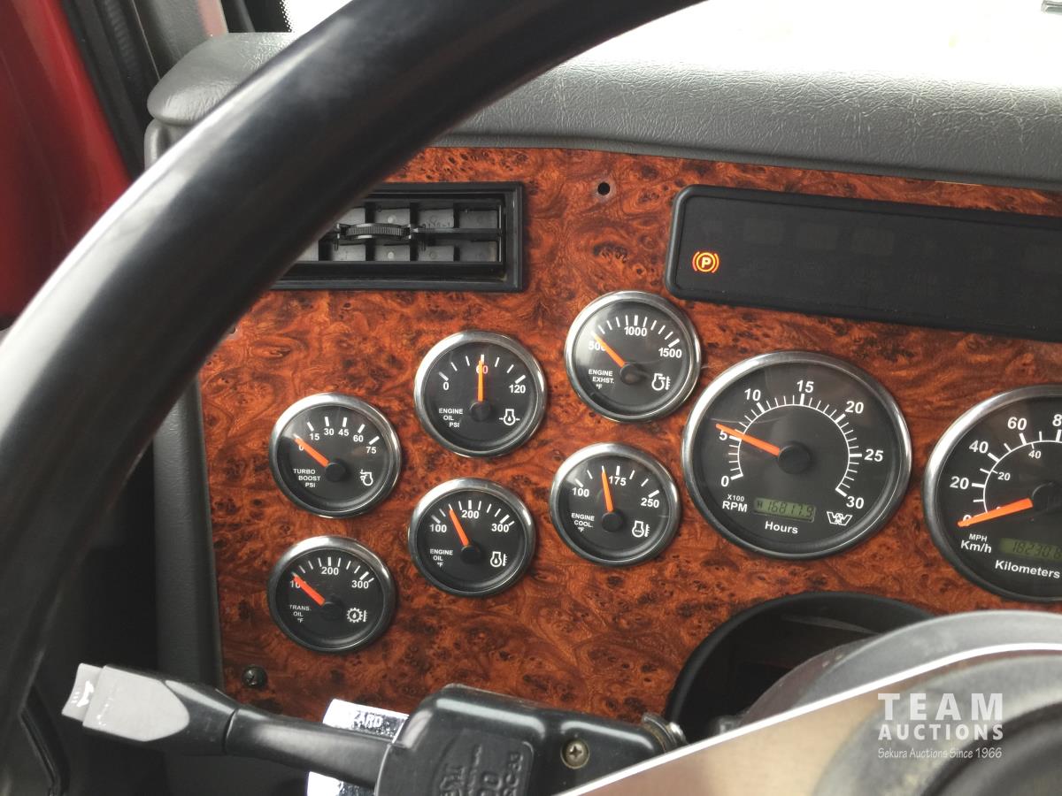 Detroit SERIES 60 14.0 L L6 515 HP diesel engine, engine brake, engine block heater, Eaton Fuller 18 speed manual transmission, mid rise 32 inch sleeper, A/C, cruise control, air ride driver seat, stereo, hydraulic wet kit, chain holders, air ride suspension, 16,000 lb front axle, 46,000 lb rear axles, 3 way diff locks, 4.30 ratio, 227 inch WB, all aluminum wheels, 385/65R22.5 front tires, 11R24.5 rear tires