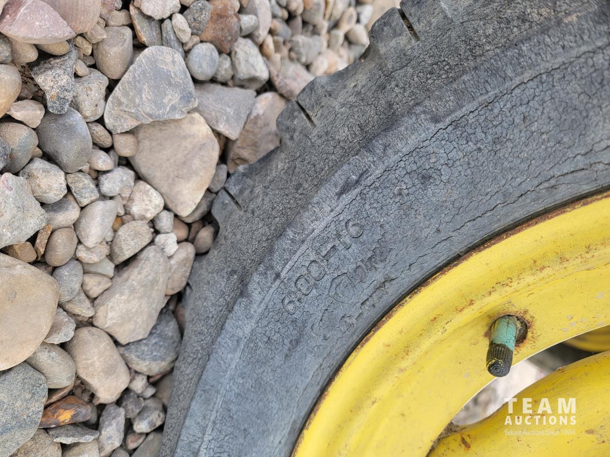 Loader, 43 inch bucket, 5.3 L 2 cylinder 46 HP, gas engine, 6 speed manual transmission, open station platform, 540 PTO, 6.50-16 front tires, 12.4-38 rear tires