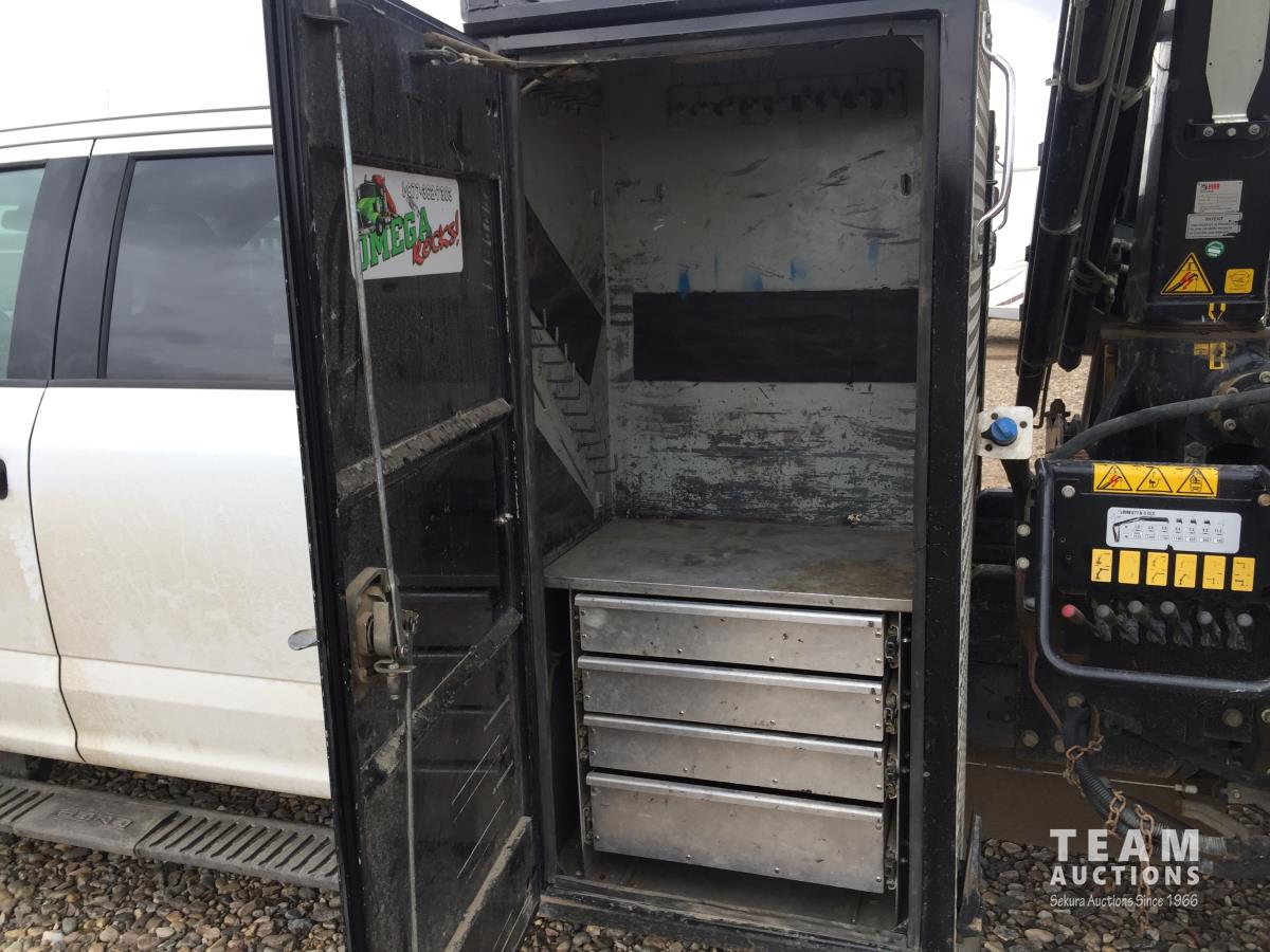 6.7 L V8 diesel engine, automatic transmission, A/C, cruise control, steel tool boxes, 96 inch x 136 inch deck, Hiab 077 B-3 CLX 3 section 31.5 ft knuckle crane, outriggers, center mount, dual controls, 8710 lb max lift capacity at 5 ft 3 inch, 3000W Inverter, 225/70R19.5 tires