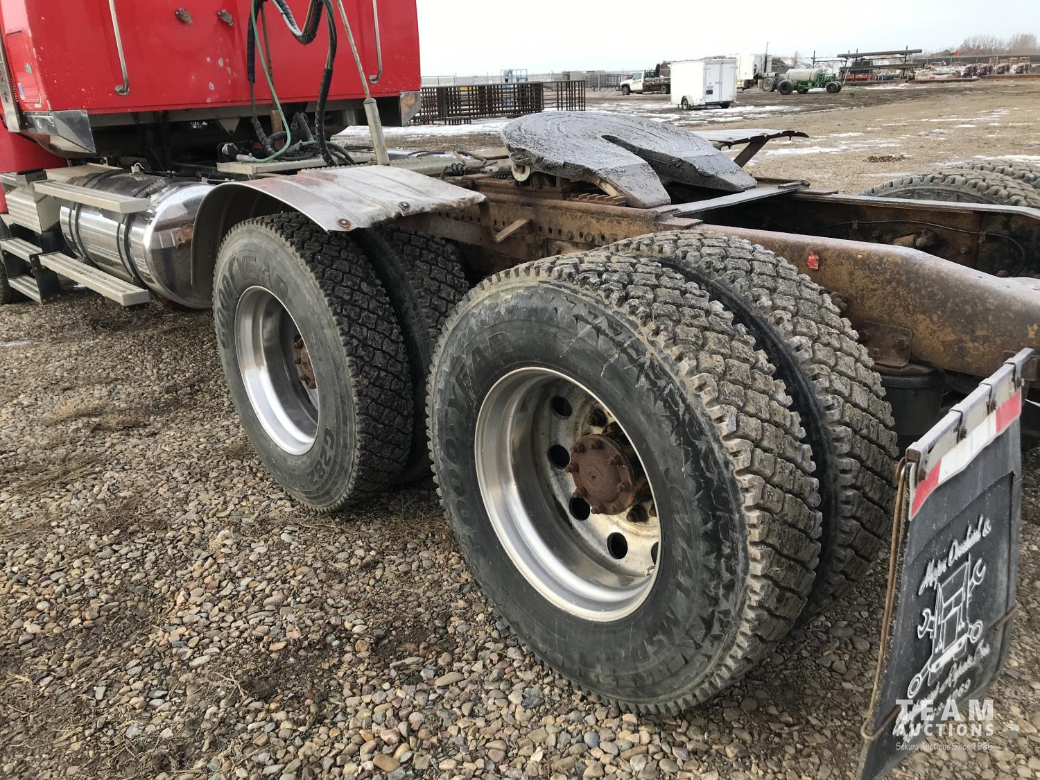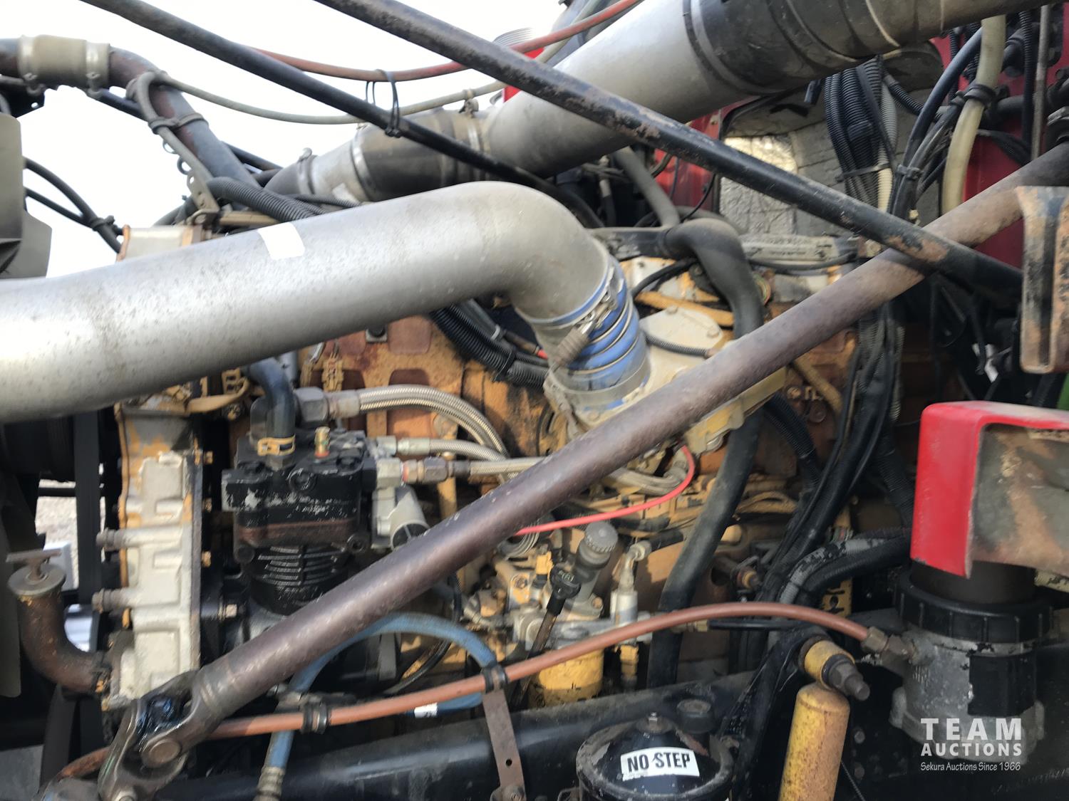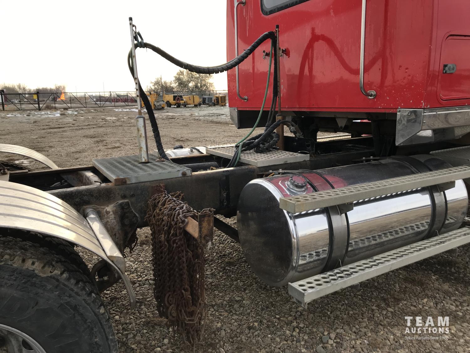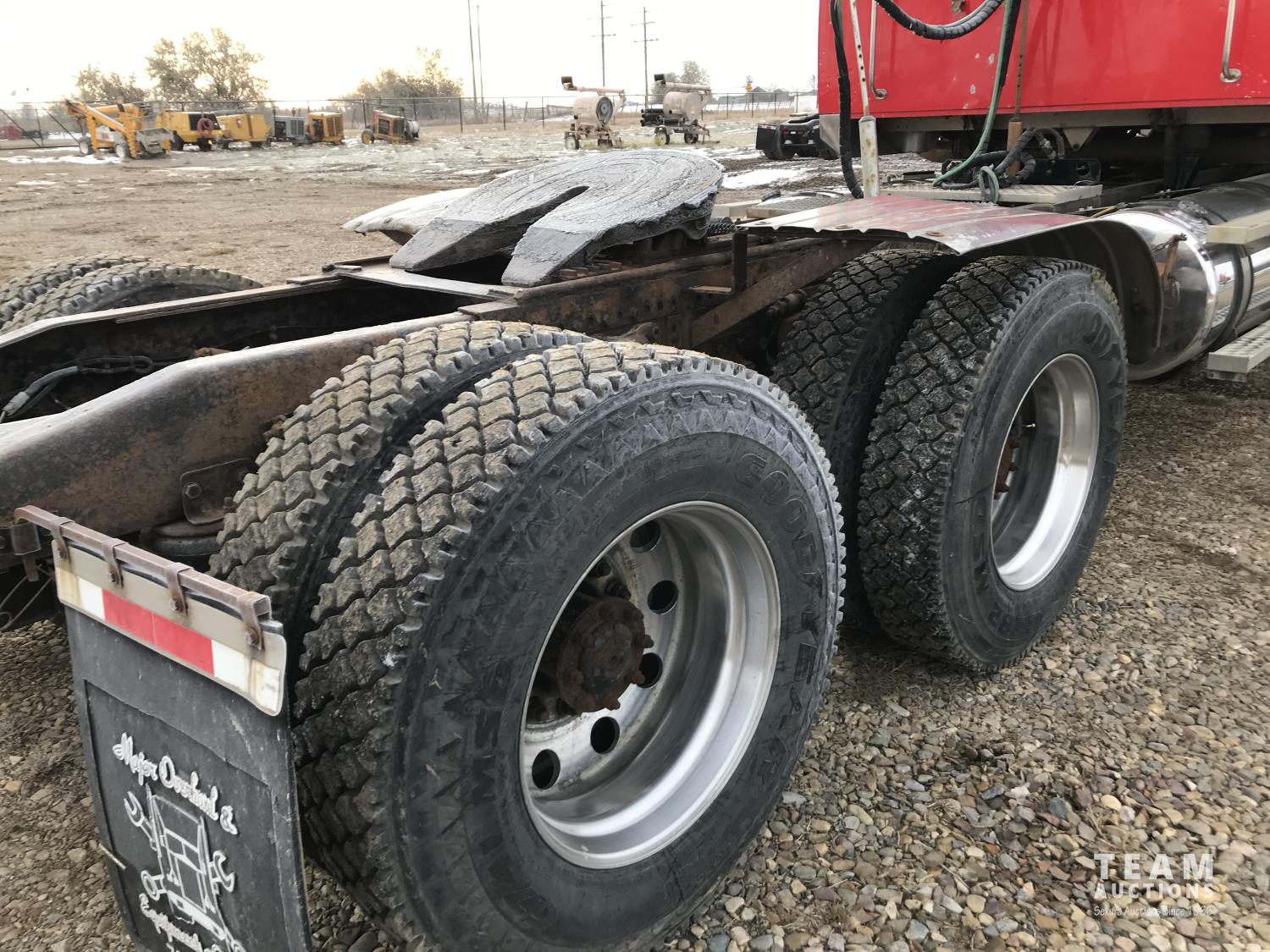 Caterpillar C15 14.6 L L6 diesel engine, engine brake, engine block heater, Eaton Fuller 18 speed manual transmission, mid rise 32 inch sleeper, A/C, cruise control, air ride driver seat, stereo, chain holders, air ride suspension, 16,000 lb front axle, 46,000 lb rear axles, 3 way diff locks, 227 inch WB, all aluminum wheels, 385/65R22.5 front tires, 11R24.5 rear tires