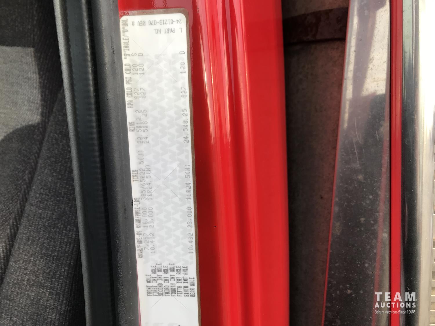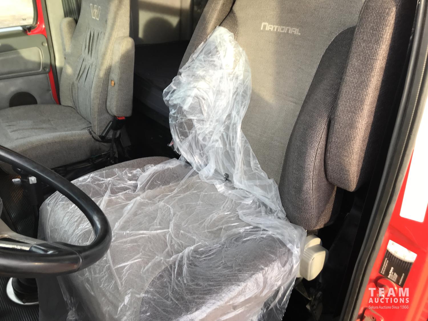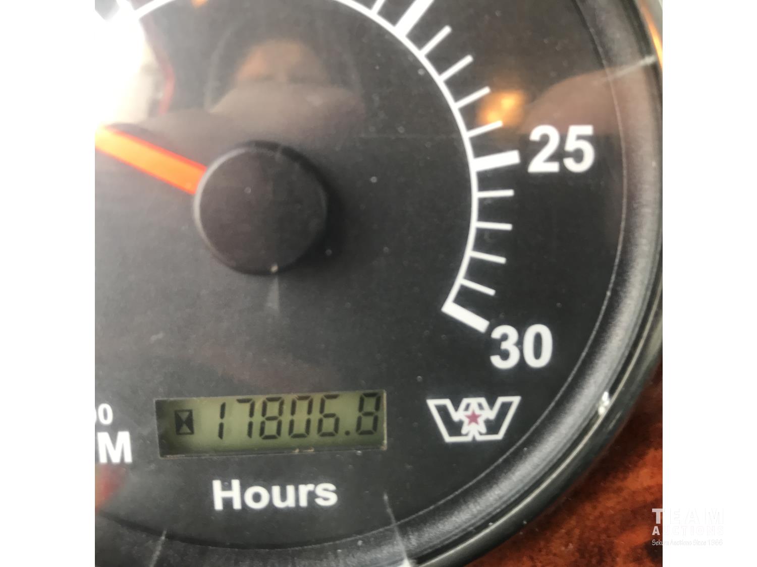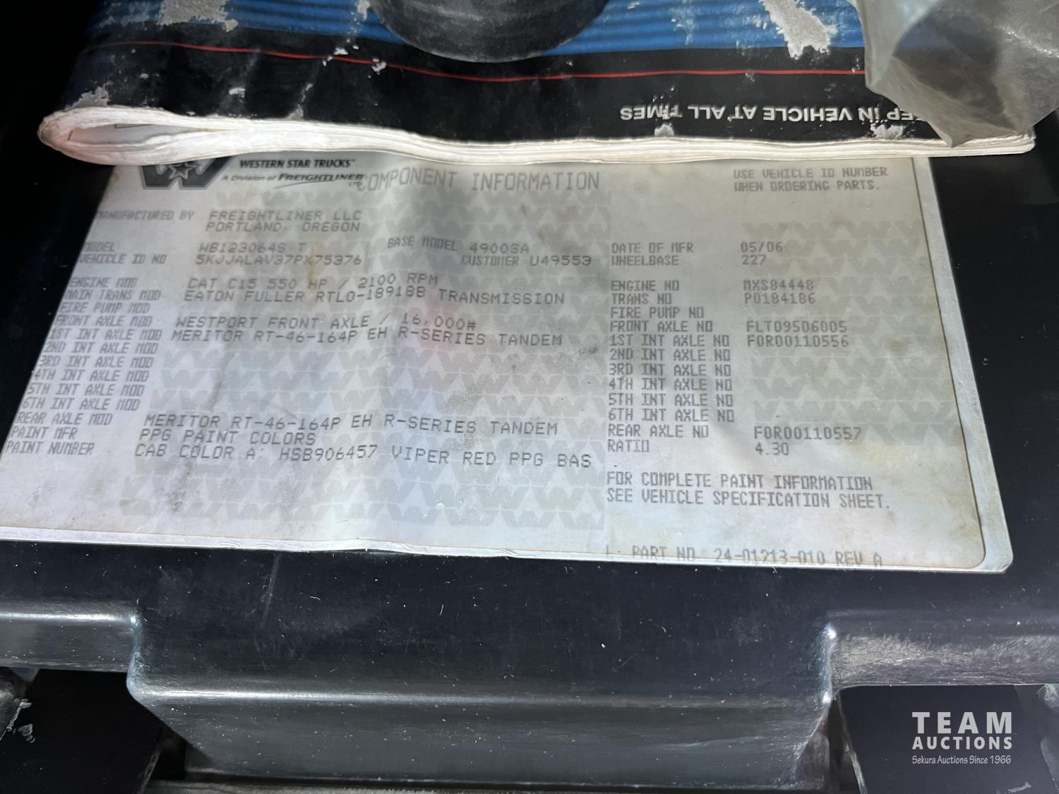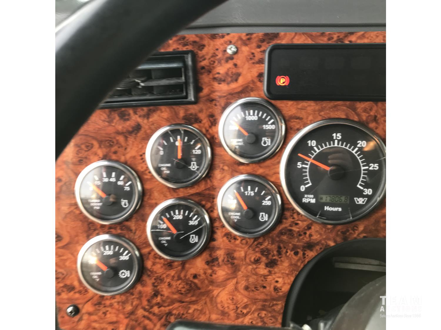 Caterpillar C15 14.6 L L6 diesel engine, engine brake, engine block heater, Eaton Fuller 18 speed manual transmission, mid rise 32 inch sleeper, A/C, cruise control, air ride driver seat, stereo, chain holders, air ride suspension, 16,000 lb front axle, 46,000 lb rear axles, 3 way diff locks, 227 inch WB, all aluminum wheels, 385/65R22.5 front tires, 11R24.5 rear tires