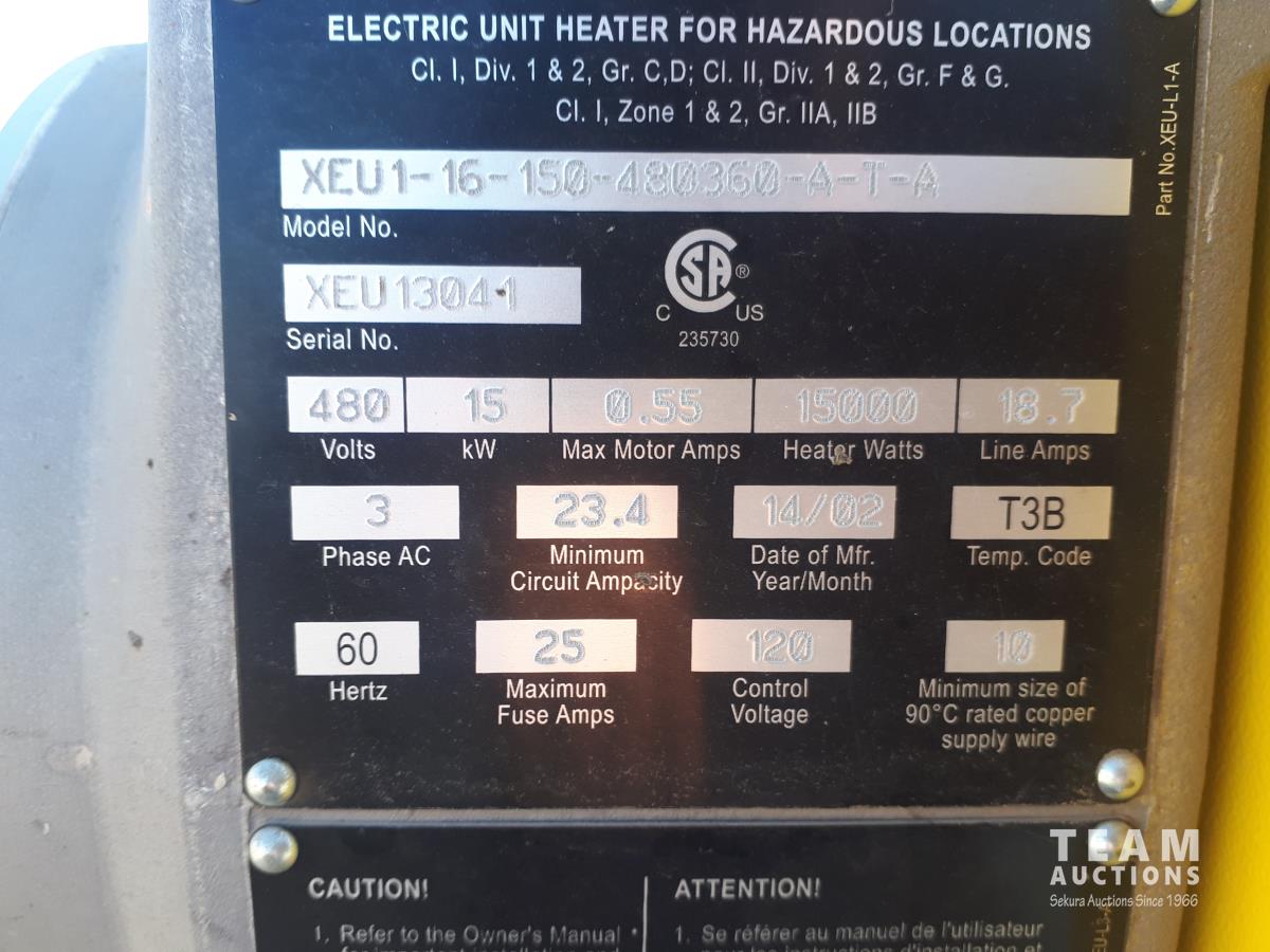Electric Heater for Hazardous Locations, 480V, 15kW, 60Hz, 3 Phase.