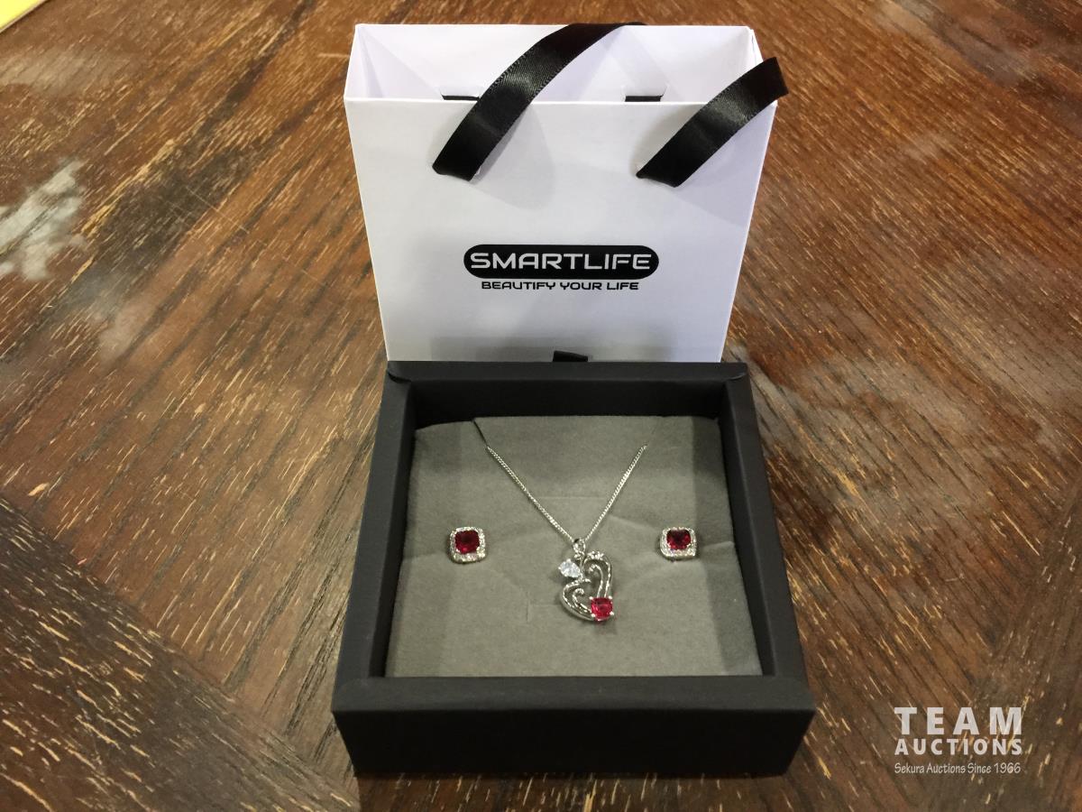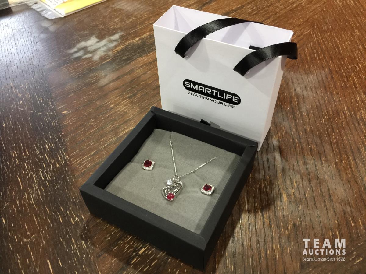 1432 Platinum Plated 2 Piece Ruby Jewellery Set (Unused)