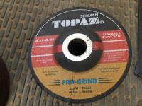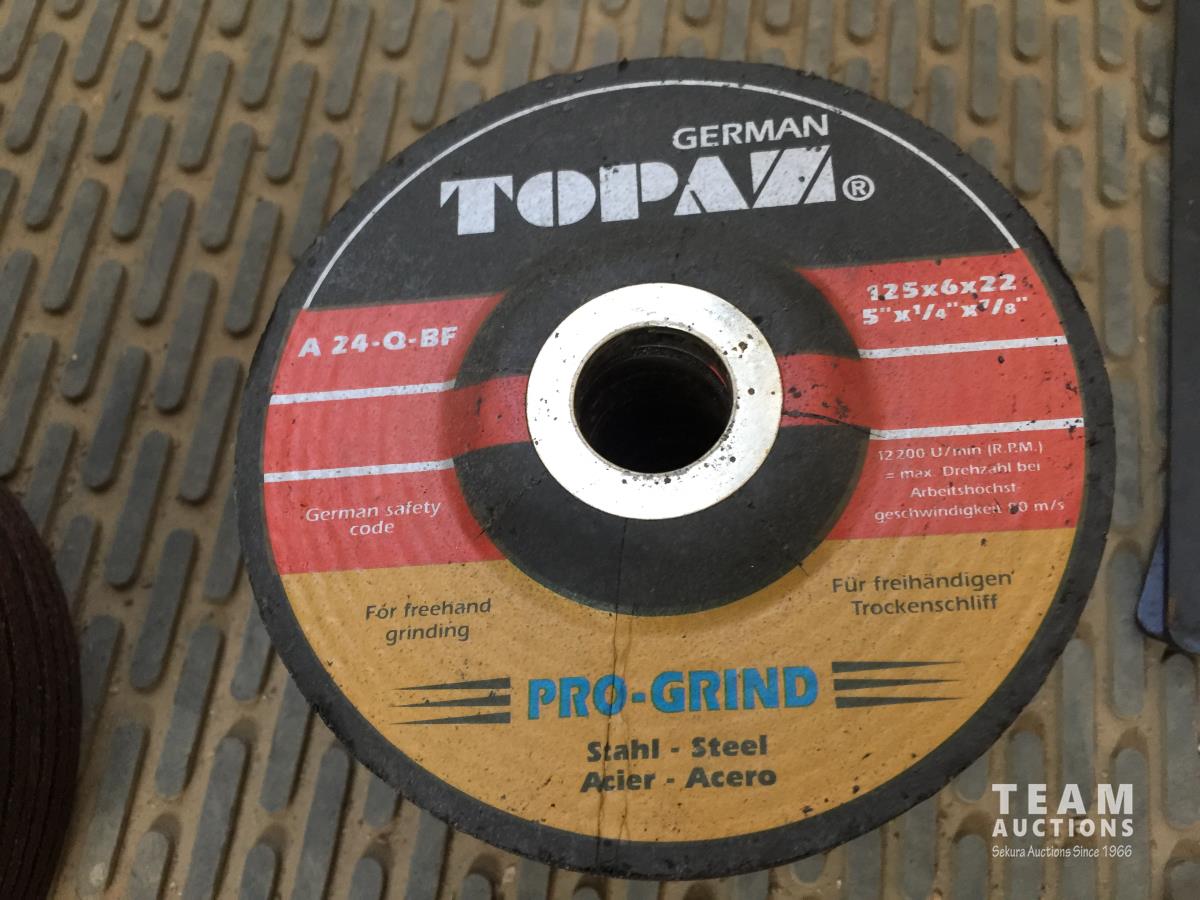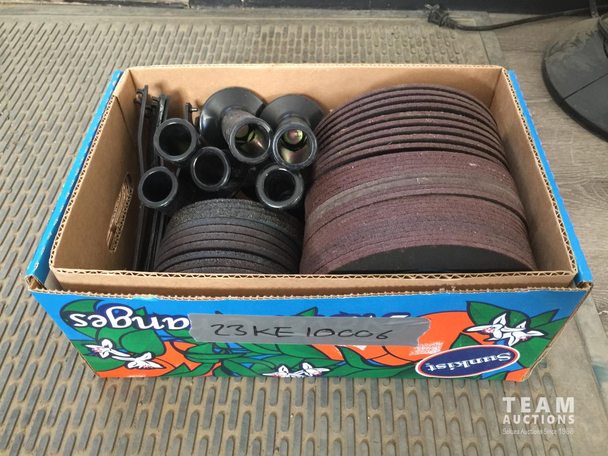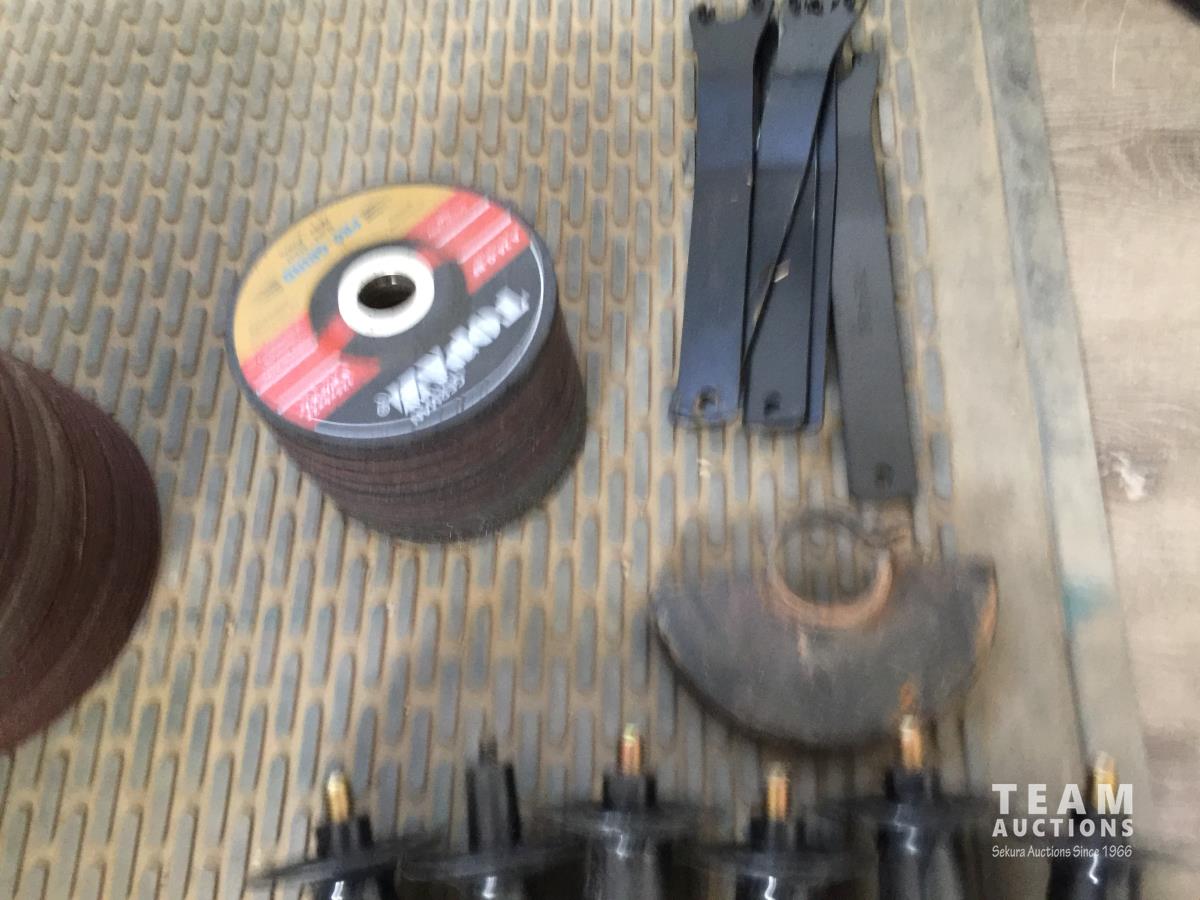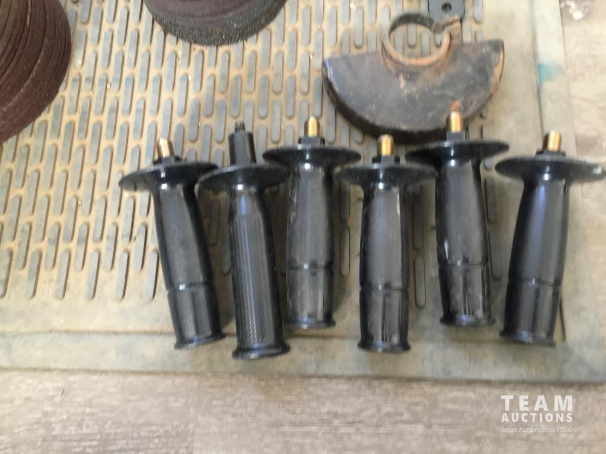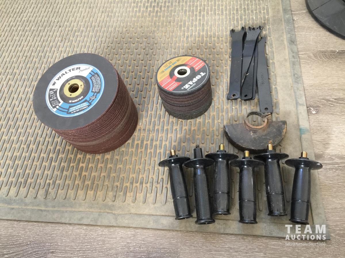 (6) Grinder handles, (5) Grinding wrenches, (28) 7 inch Grinding wheels, (12) 5 Inch Griding wheels, (1) 5 inch Grinder Cover