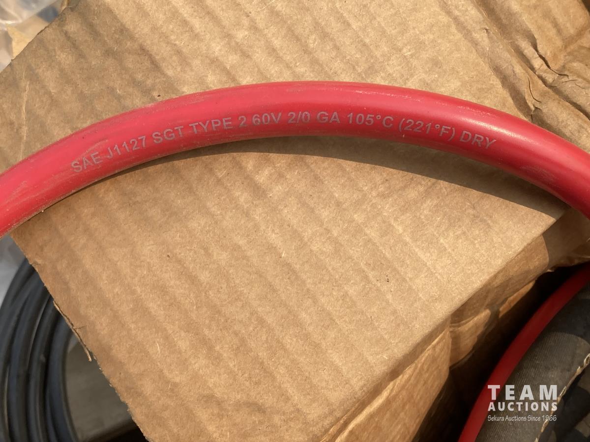 2 Boxes of unused 3/8 inch x 10 ft hydraulic hose 1 Box of unused 3/8 inch x 12 ft hydraulic hose. Type 2 60V 2/0 GA cable.