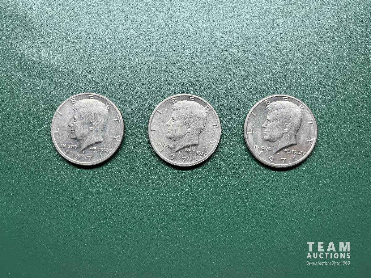 Set of three U. S half dollar silver coins. (3) 1971