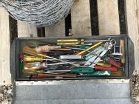 1907 Toolbox w/ Tools, Qty of Barbwire & (2) Fuel Filters
