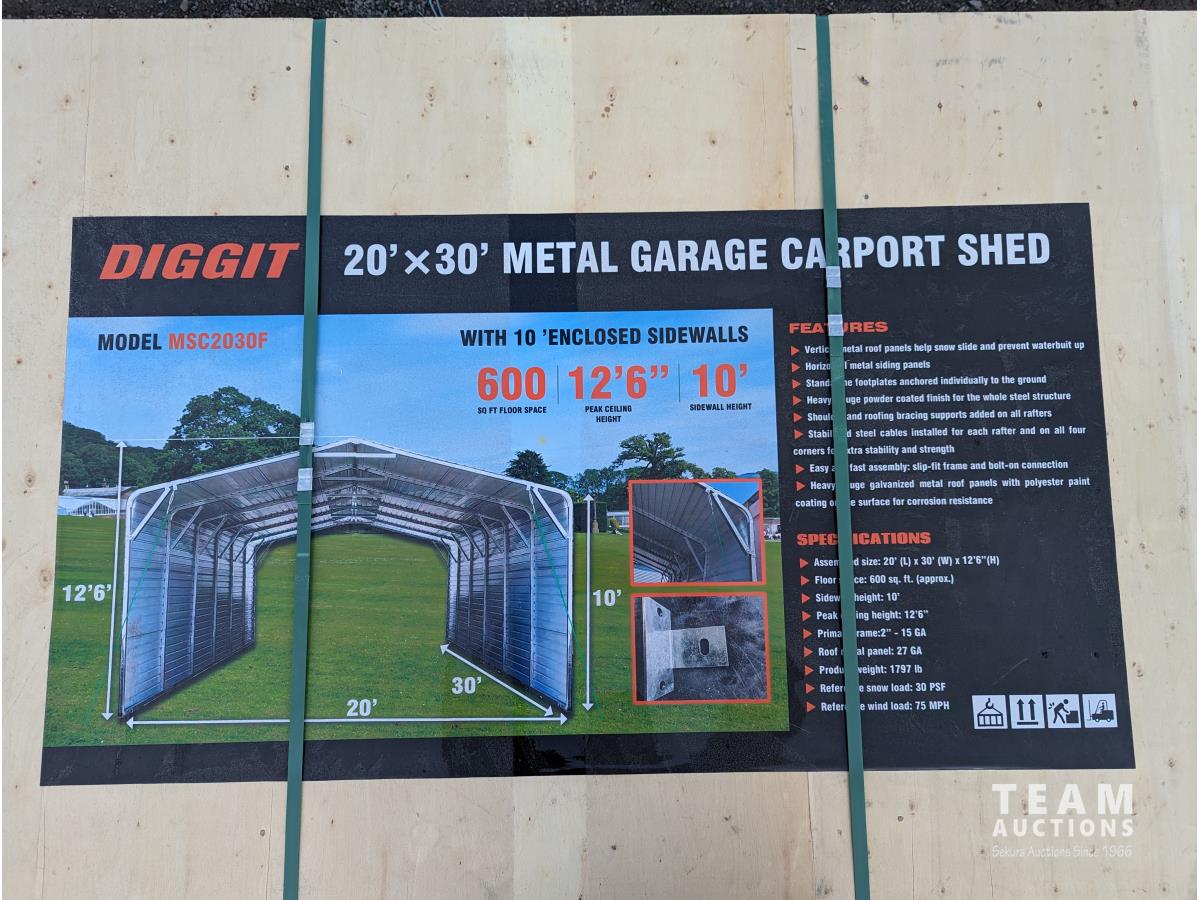 111 2023 Diggit MSC2030F 20 Ft X 30 Ft Metal Garage Carport (Unused)