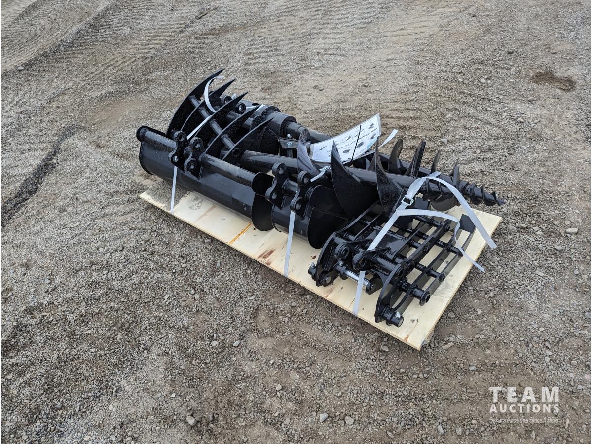 Quick hitch, rake, ripper, grabber, auger, 12inch auger rod, 8 inch bucket, 20 inch bucket, 32 inch bucket