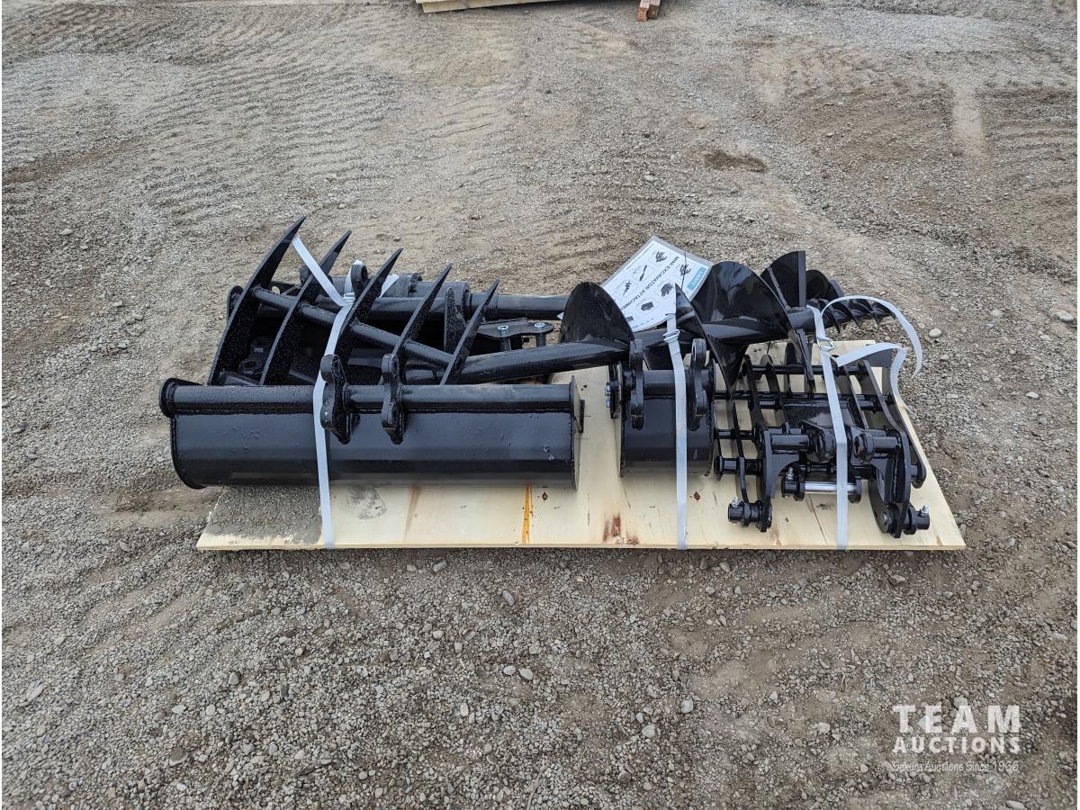 Quick hitch, rake, ripper, grabber, auger, 12inch auger rod, 8 inch bucket, 20 inch bucket, 32 inch bucket