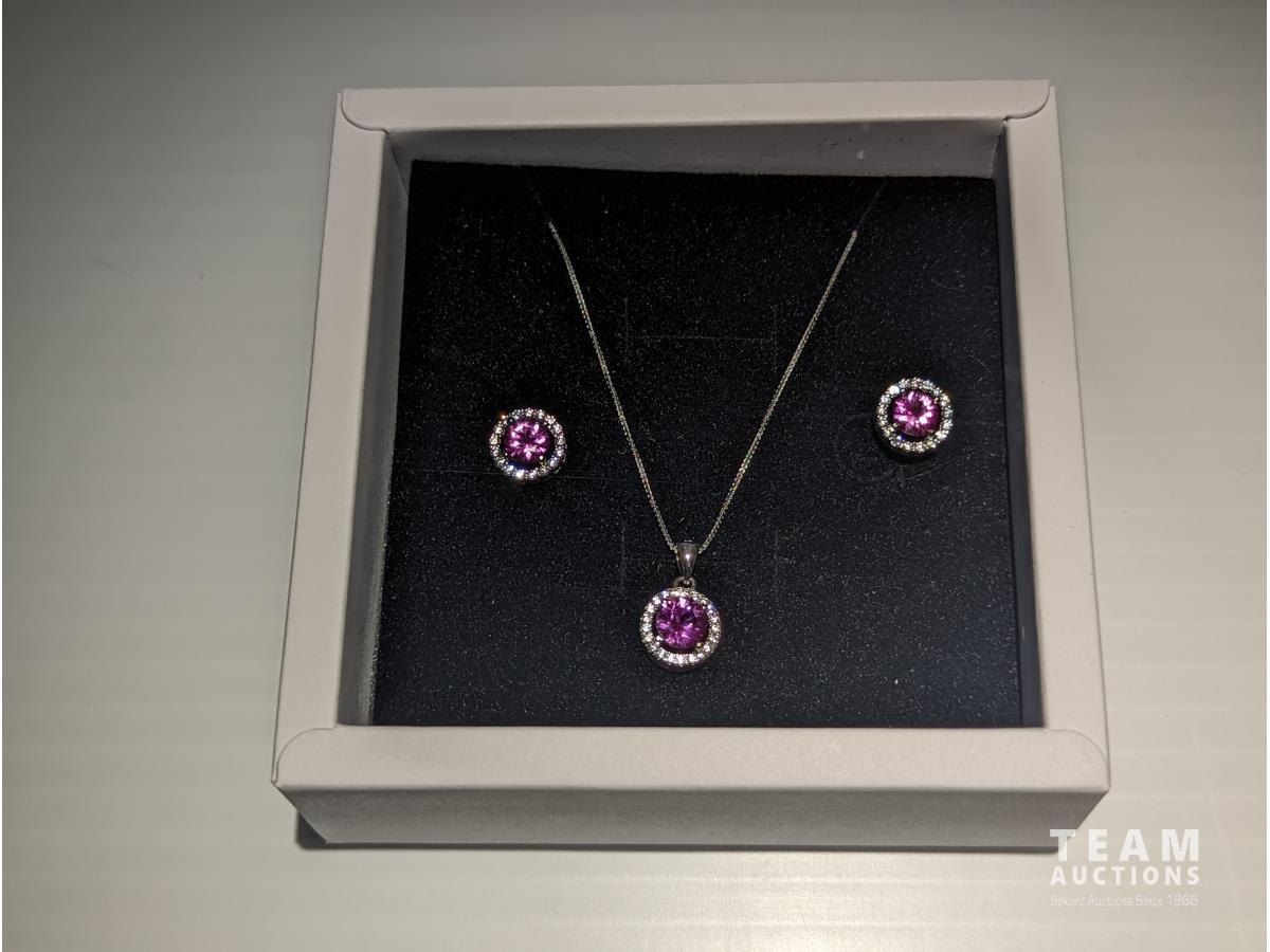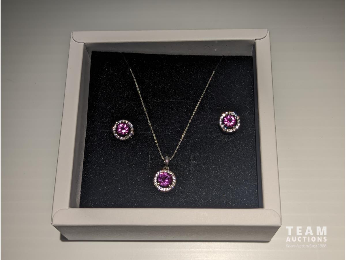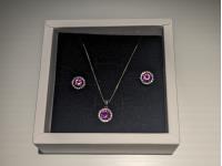 6.5 mm pendant & 6.0 mm earrings, mounted in sterling silver w/white gold overlay