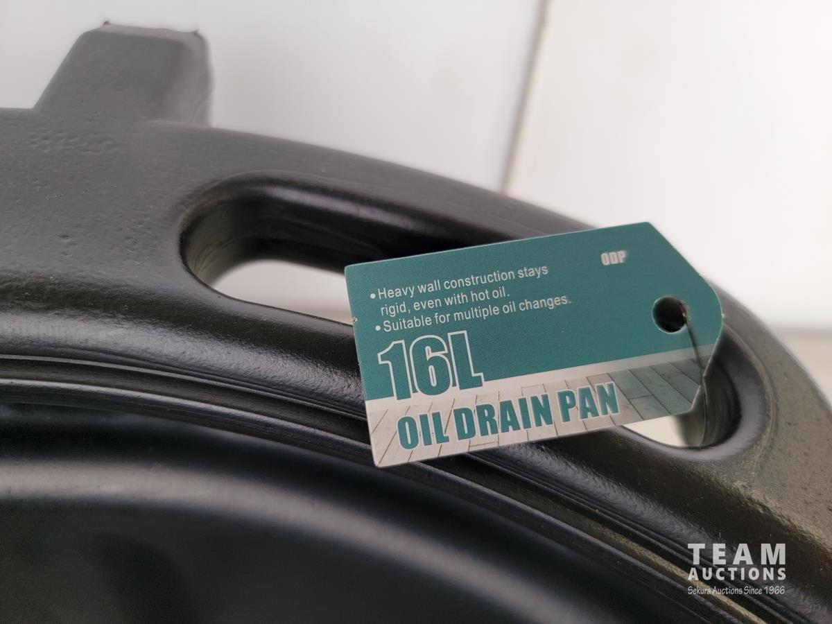 1542 16L Oil Drain Pan and 2 Piece Strap Wrench Set (Unused)