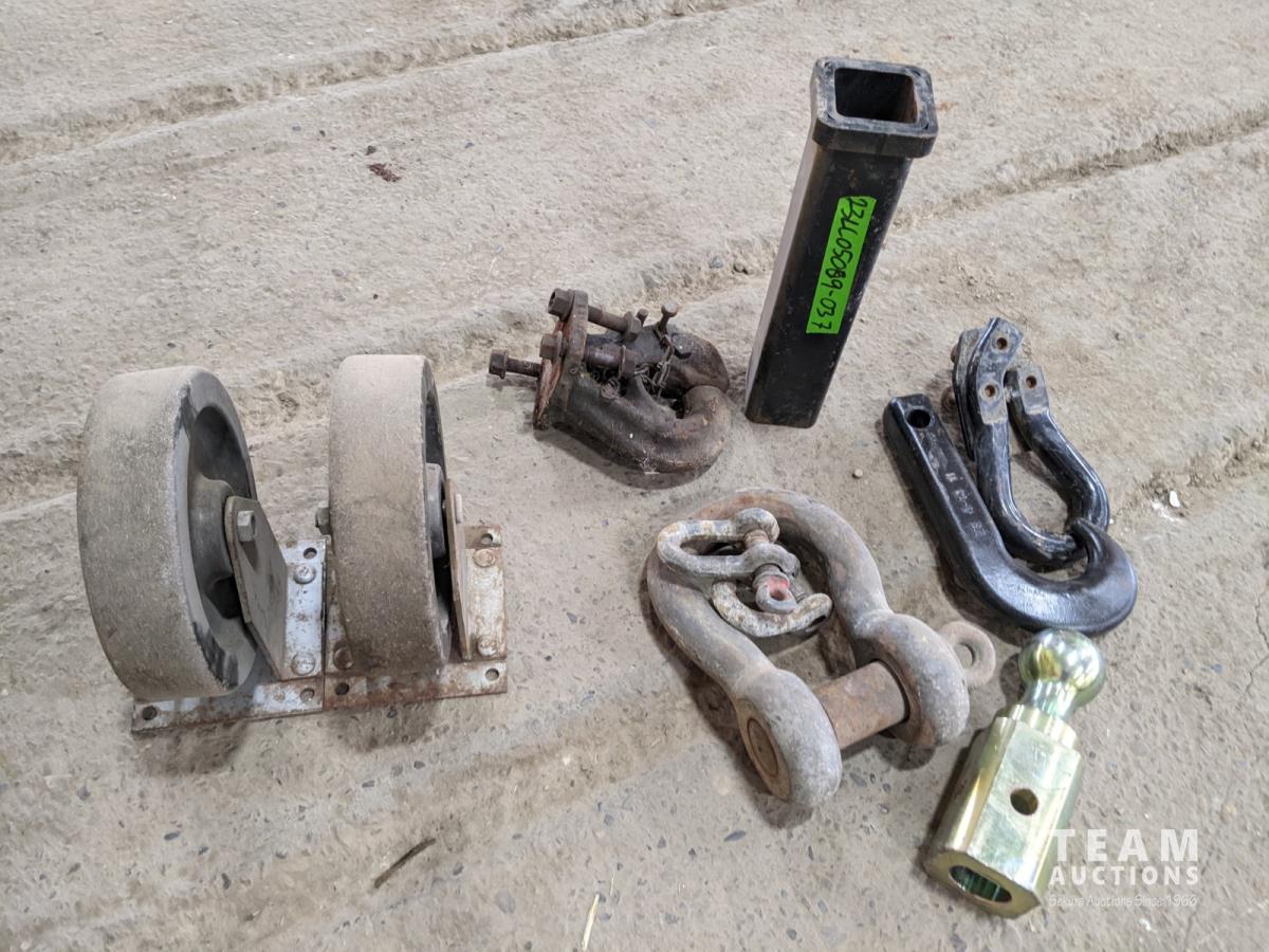 1433 (2) Tow Hooks, Clevis, Hitch Extender, Pintle Hitch and (2) Castors