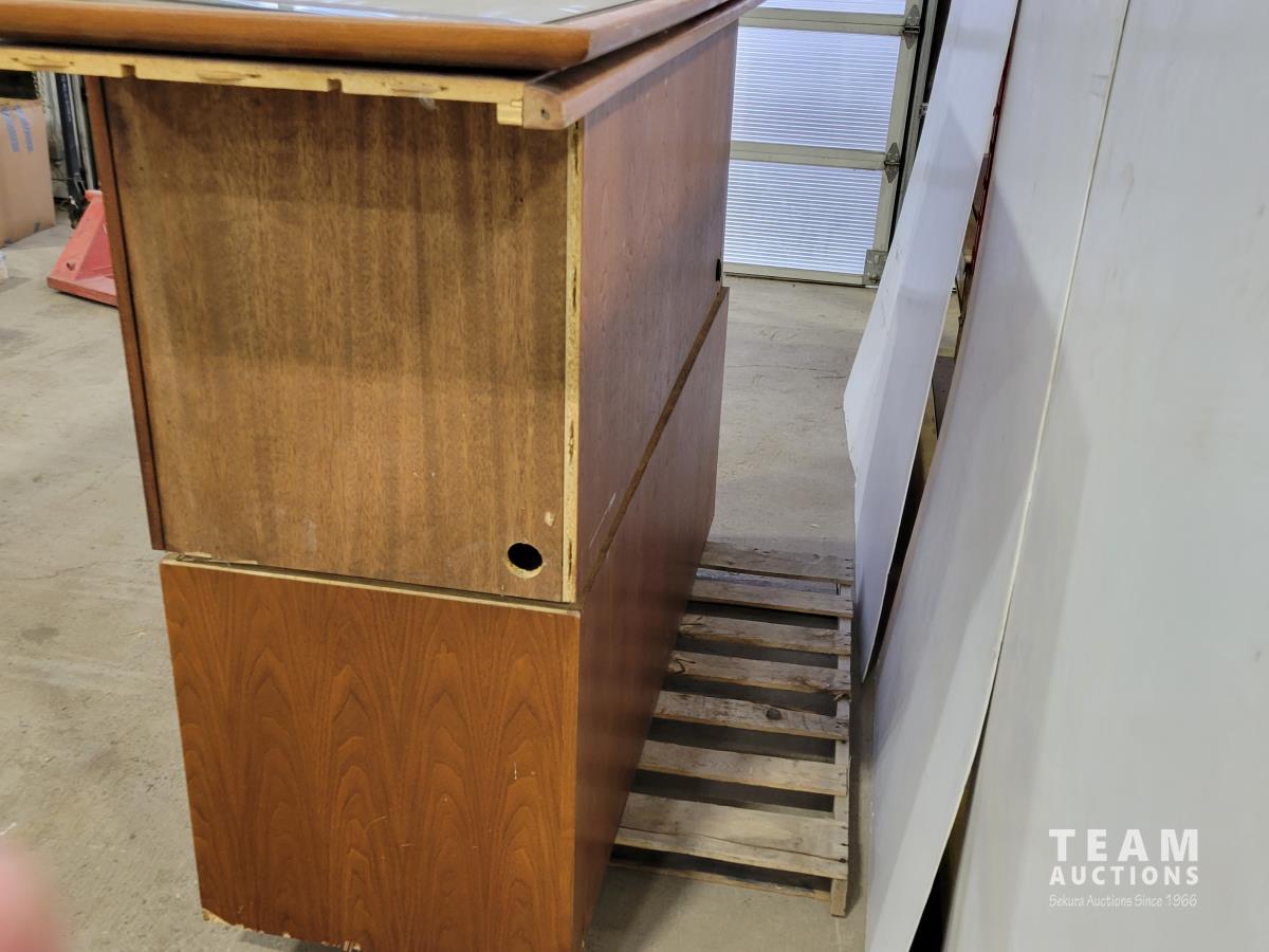 1208 (2) Wooden Cabinets with Glass Overlay Tops