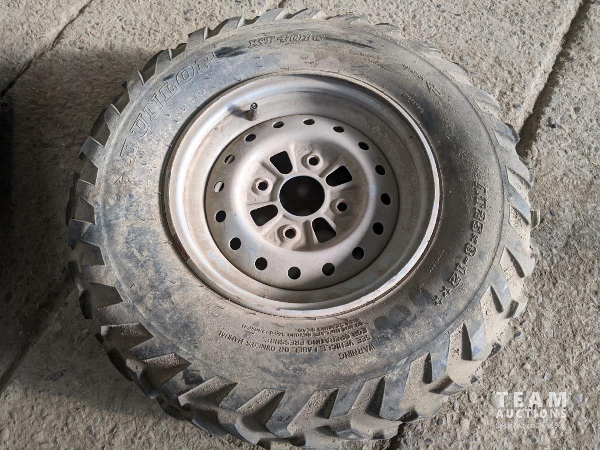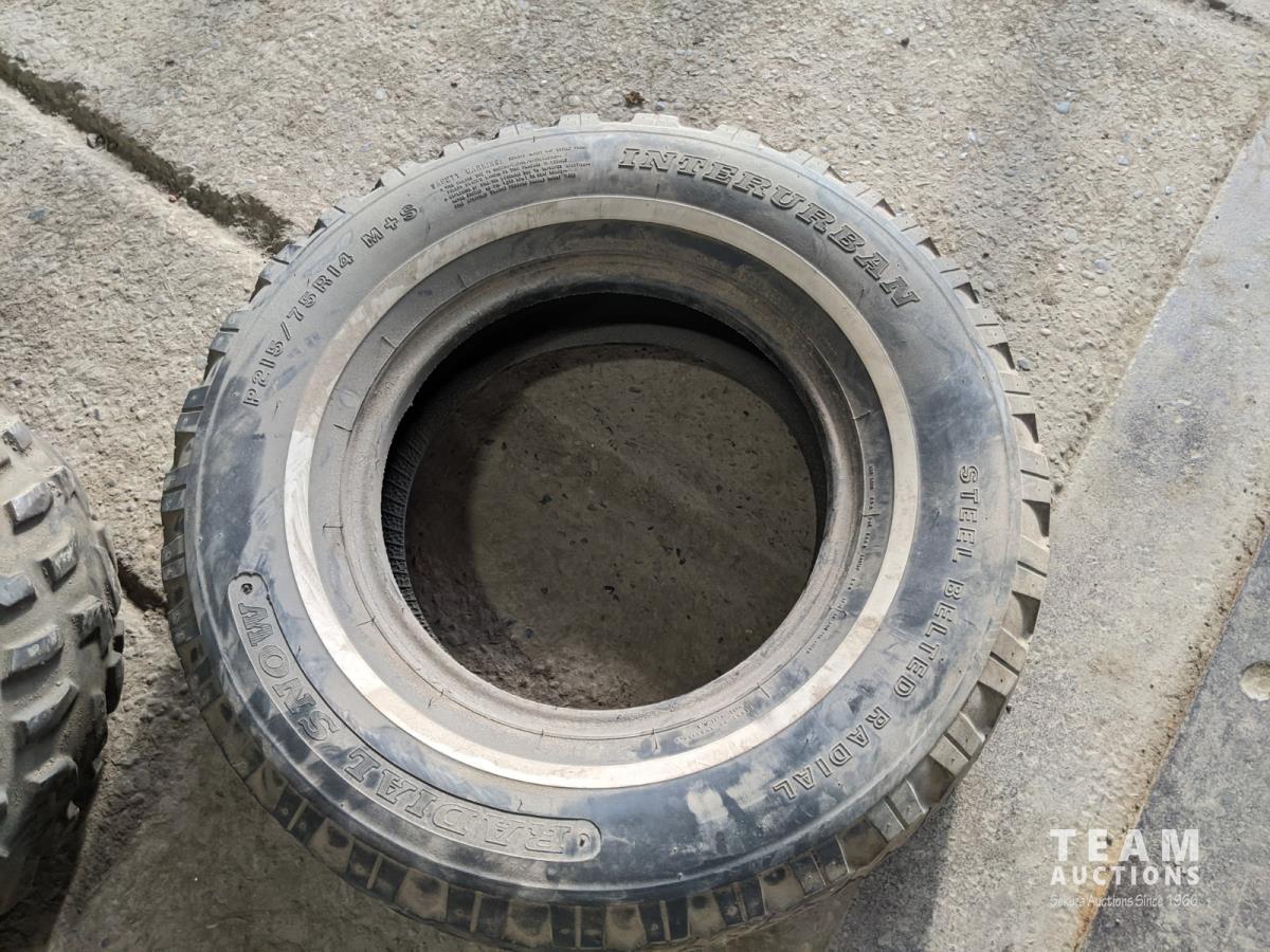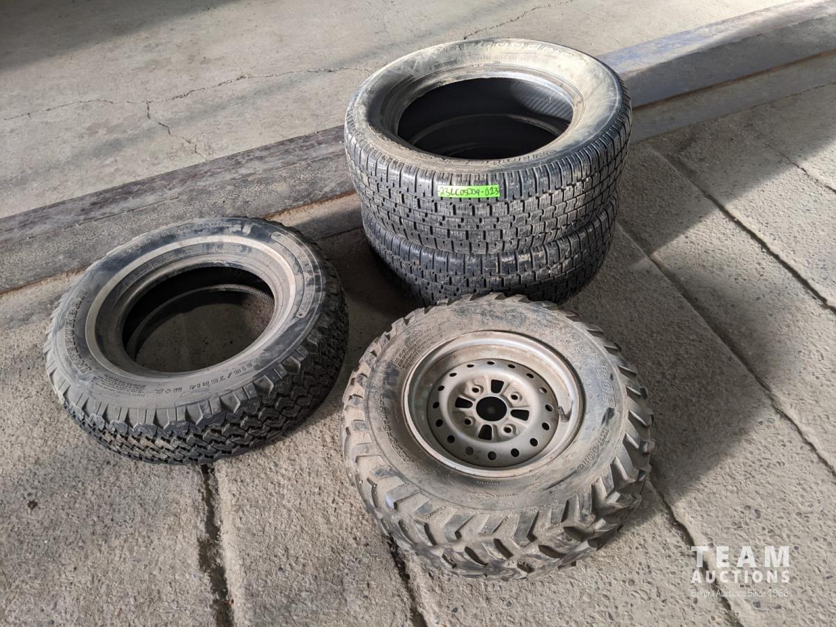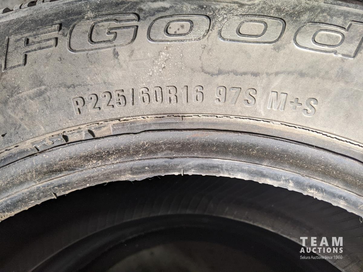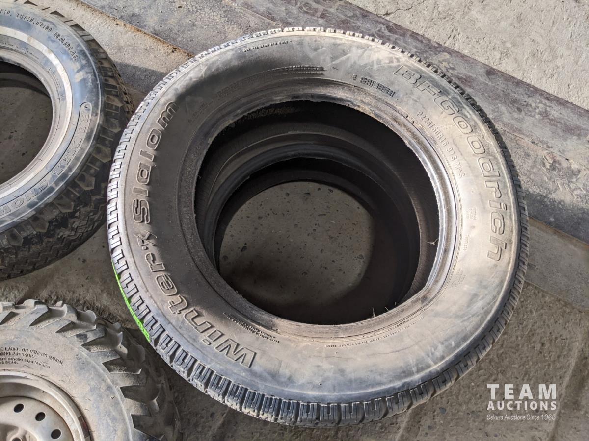 (2) BF Goodrich Winter Slalom 225/60R16 tires, (1) Interurban 215/75R14 tire, (1) Dunlop KT401c AT25X8-12 ATV tire on 4 bolt rim