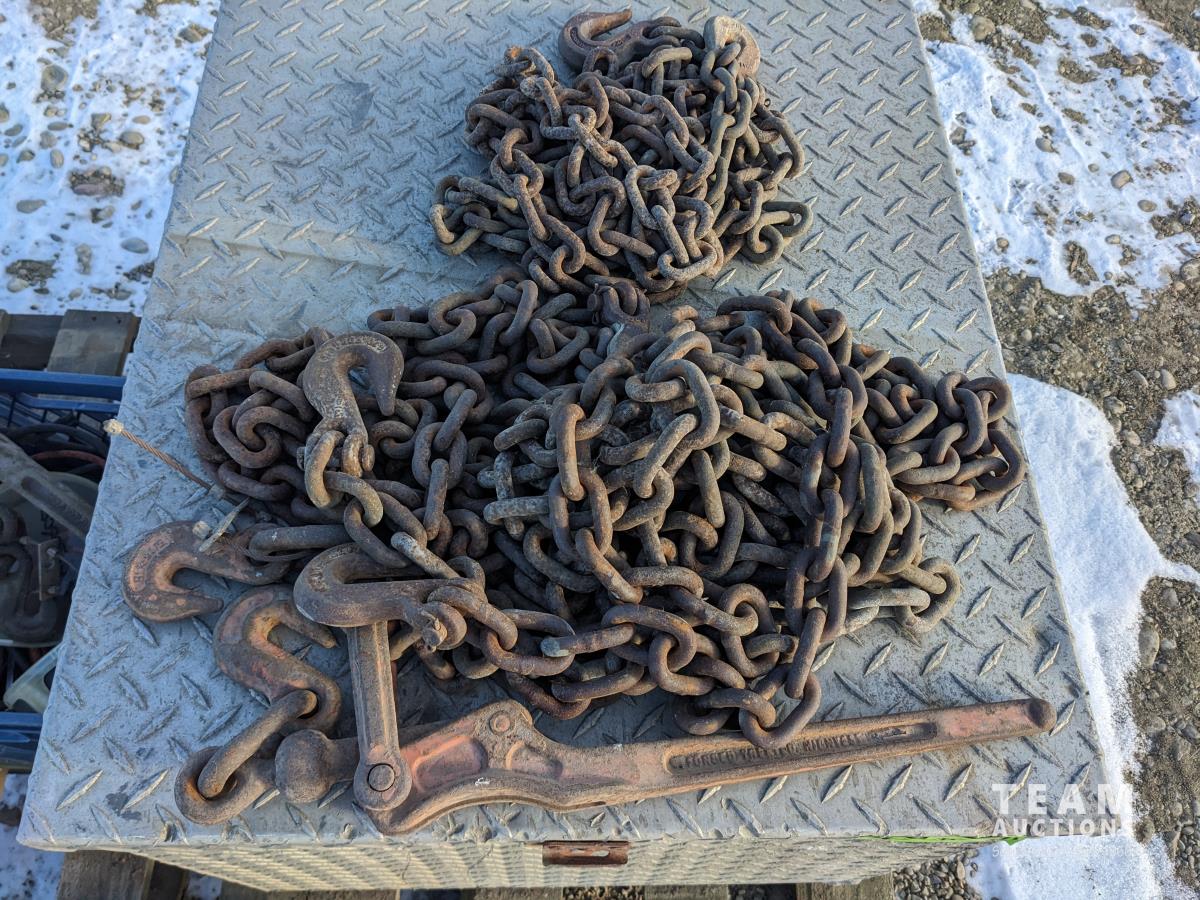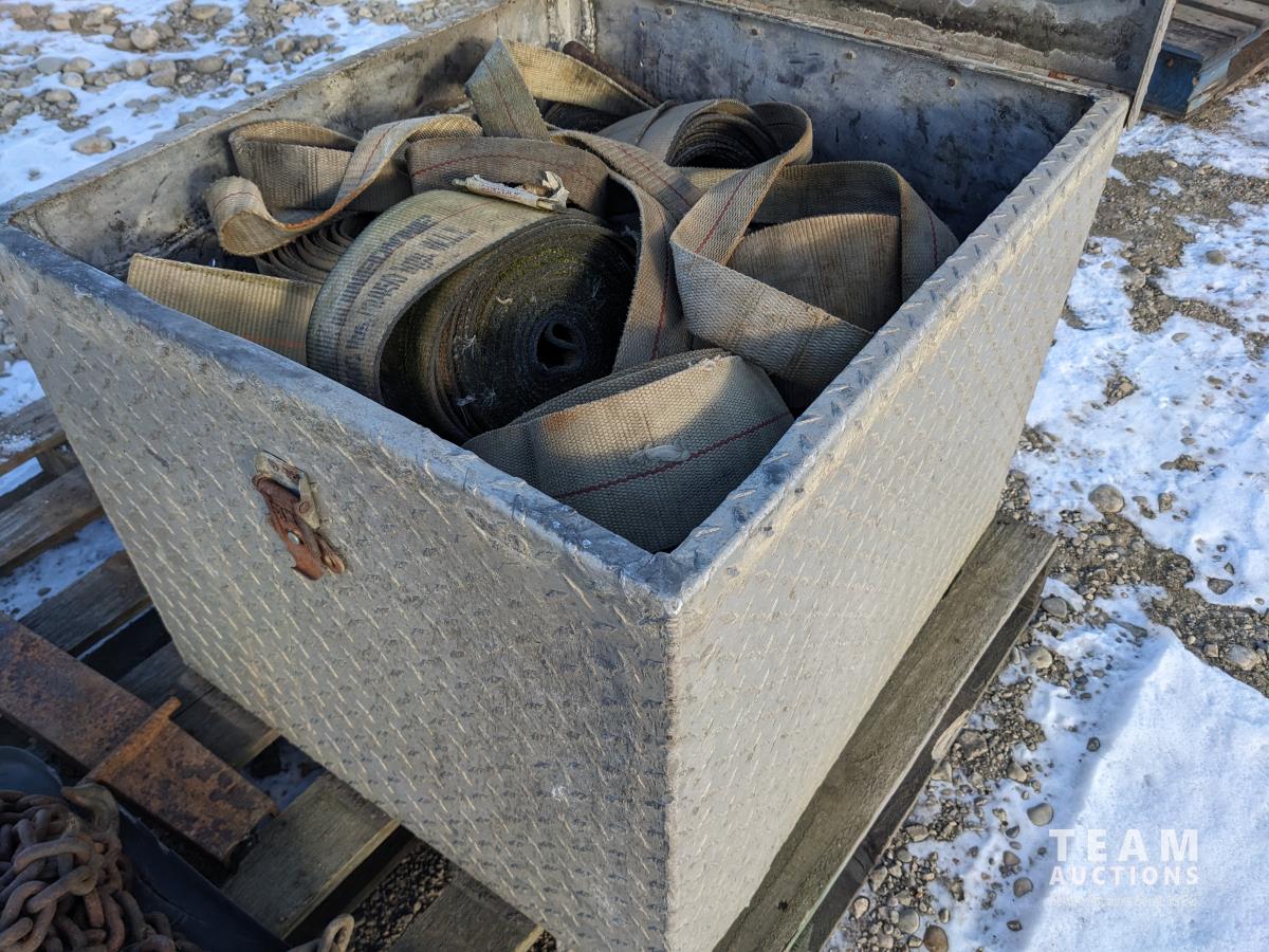 1900 Checker Plate Tool Box with Qty of Tire Chains