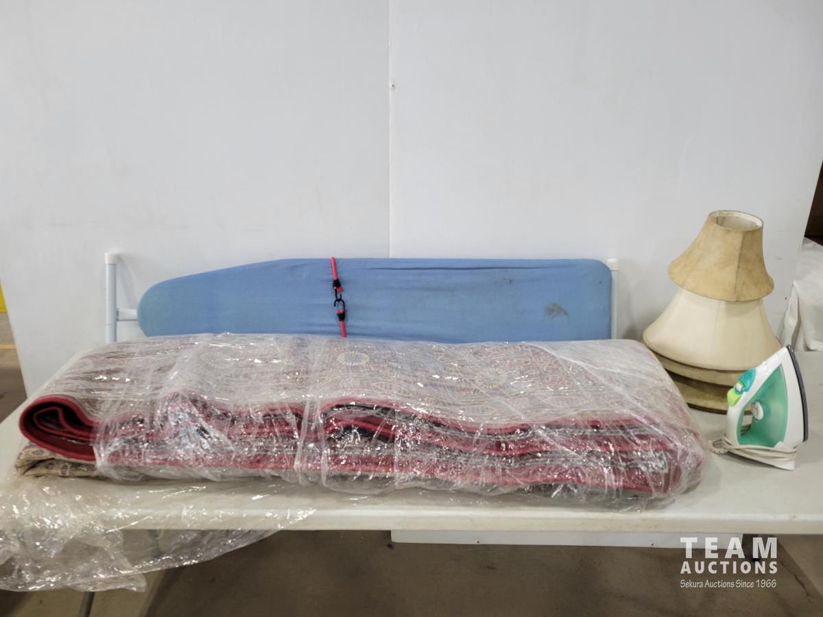 1086 Ironing Board, Iron, (5) Lamp Shades and Large Area Rug