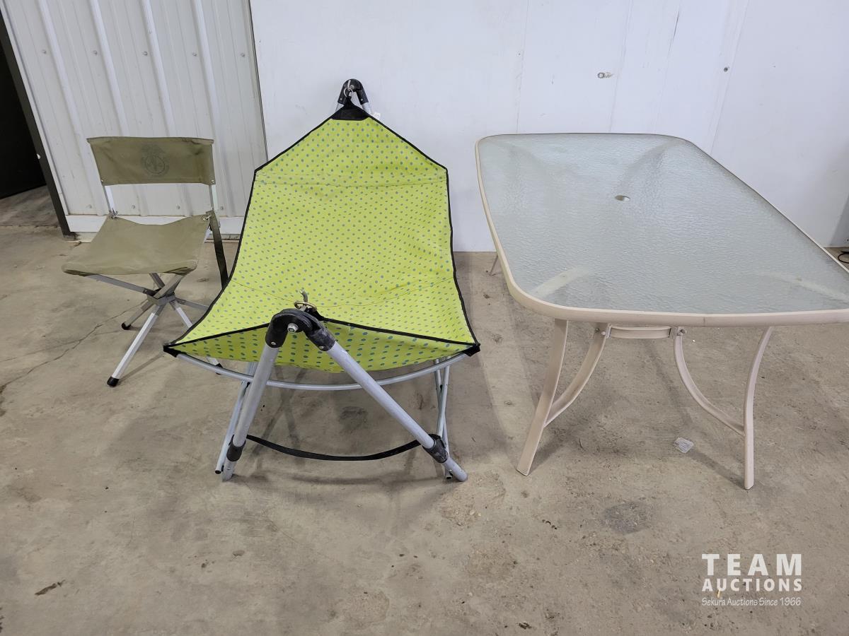1005 Patio Table, Home Zone Hammock and Folding Chair