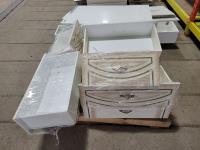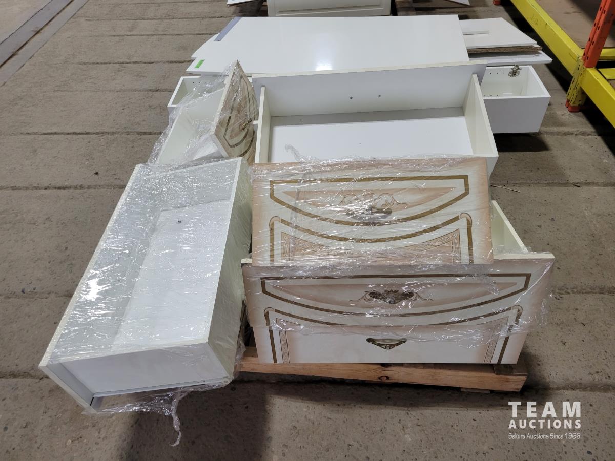 Cabinets, panels, footboard, drawers, mirror