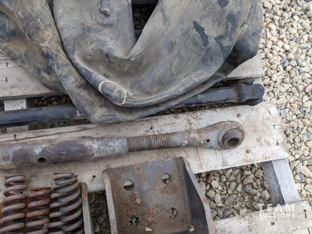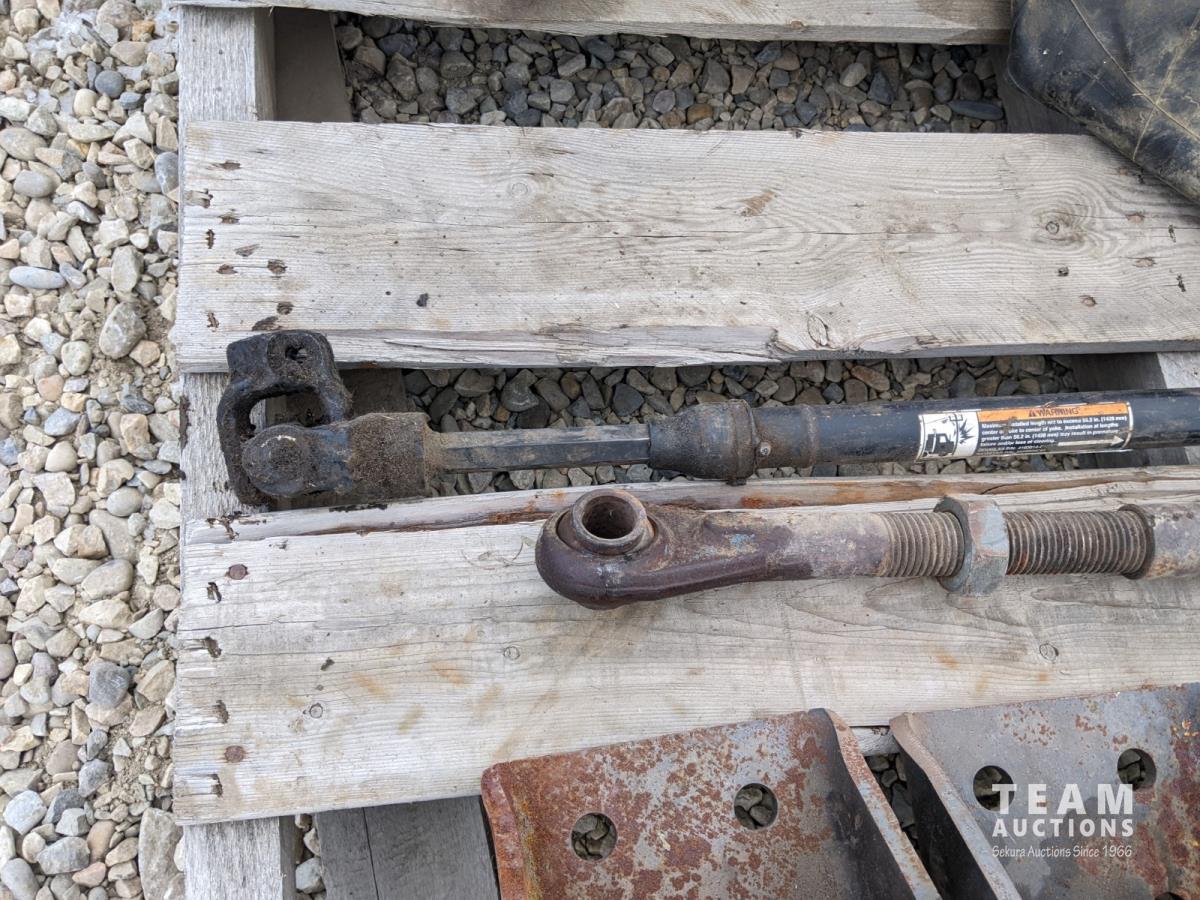 (4) steel brackets, 3 PT top link, small PTO shaft, (2) inner tubes, (2) bags of sawdust
