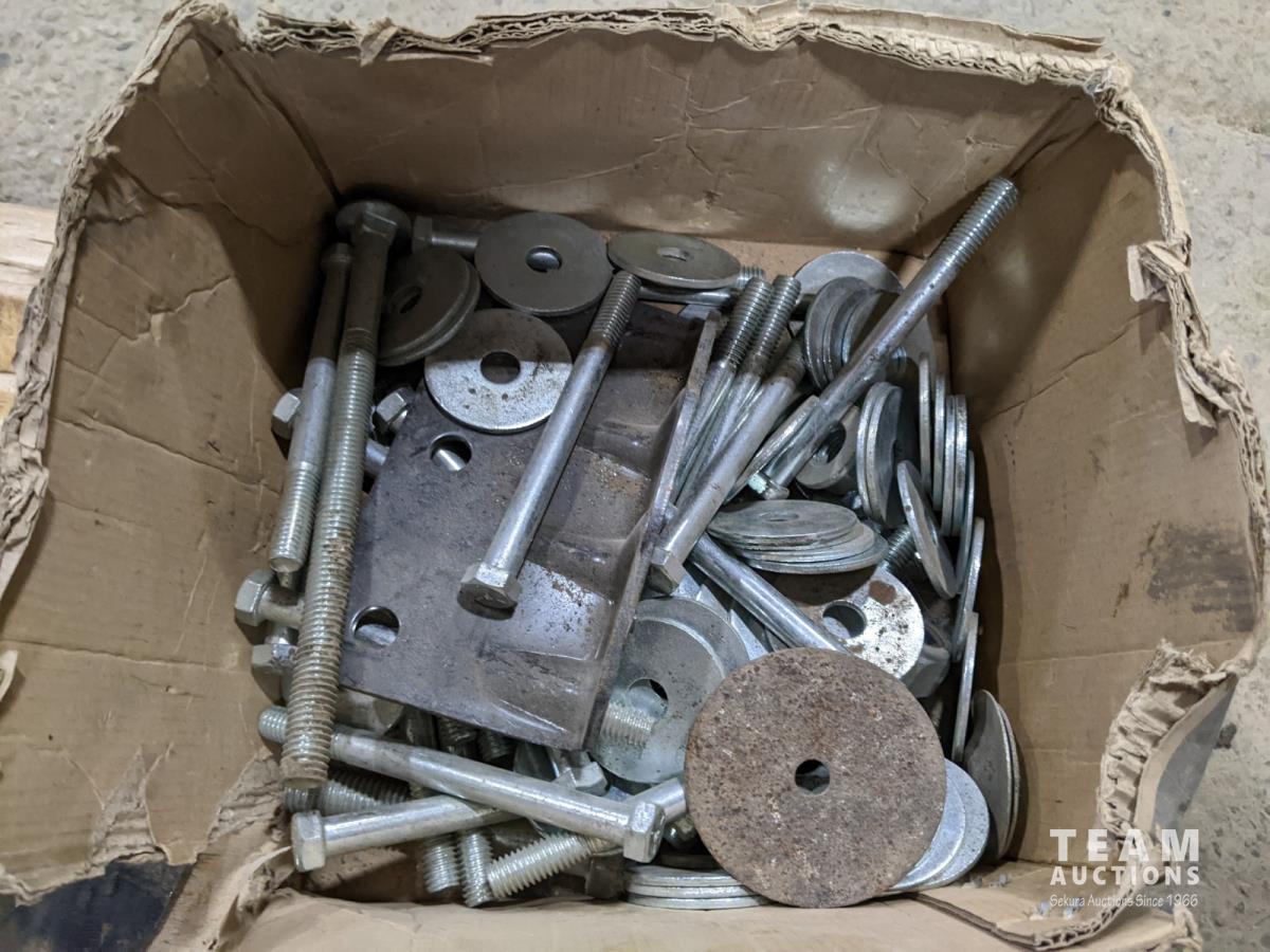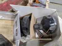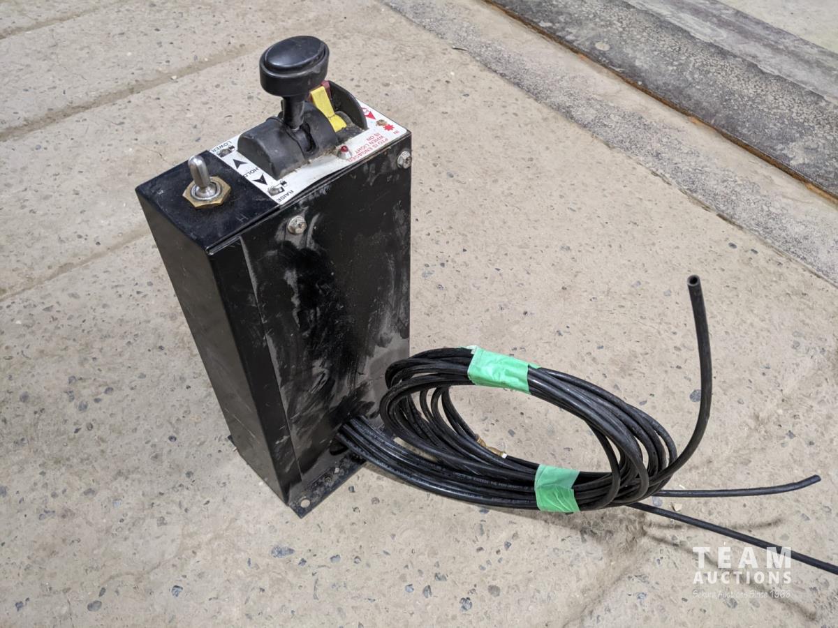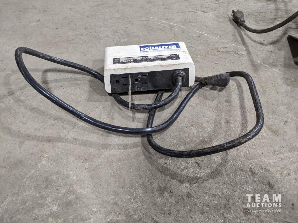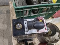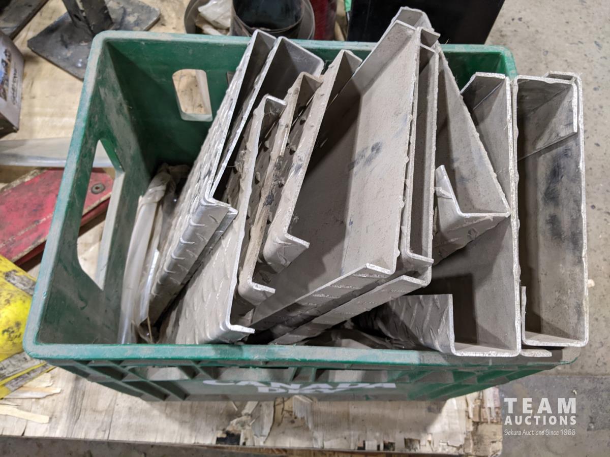 Qty of checker plate, (2) jerry cans, dump box PTO control, amber light, (3) tow hooks, Black & Decker 7-1/4 inch circular saw, electric fencer with insulator, Dodge passenger side heated mirror