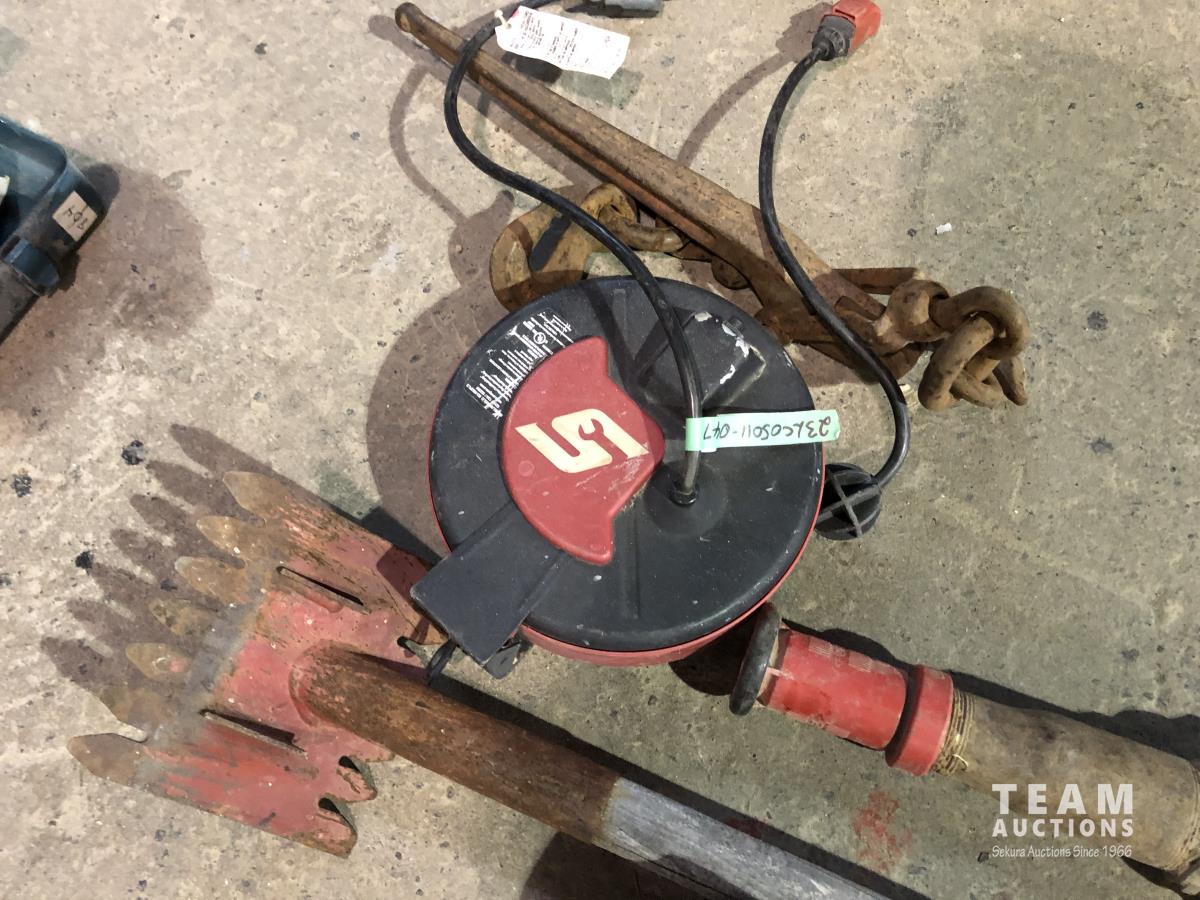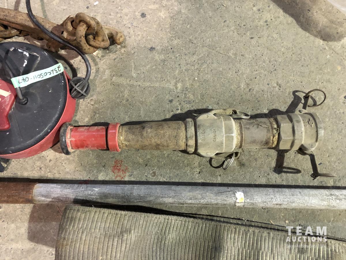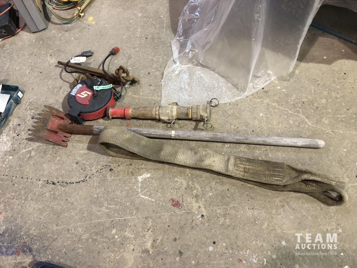 Snap on extension cable, 6 ft l x 4 inch w sling, roofing nail remover, boomer. Fire hose nozzle with cam locks