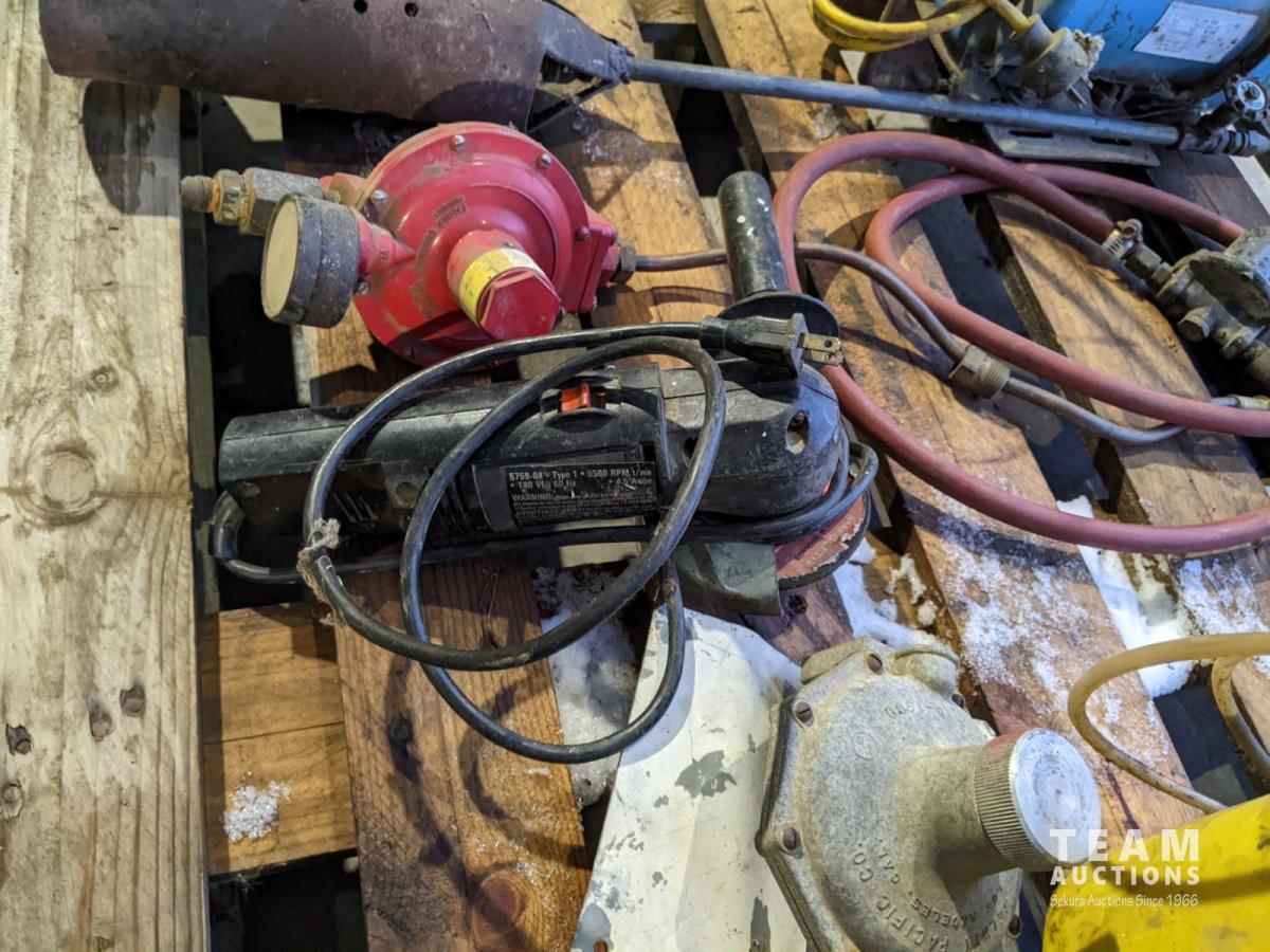Subaru 1 inch pump, Century single phase motor, Black & Decker angle grinder, propane torch