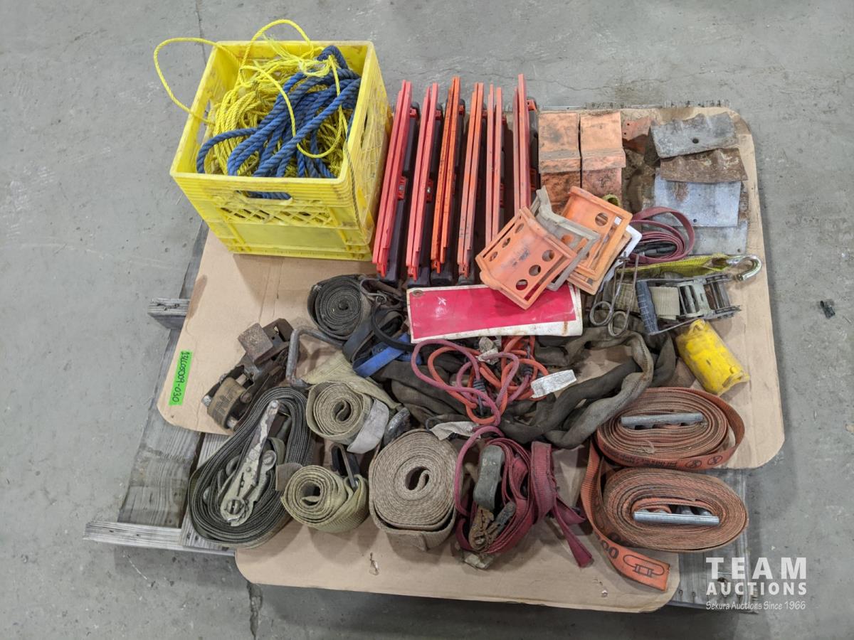 Safety triangles, rope, strap guards, ratchet straps, wide load banner