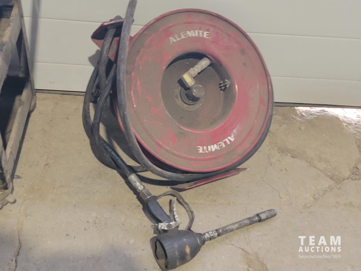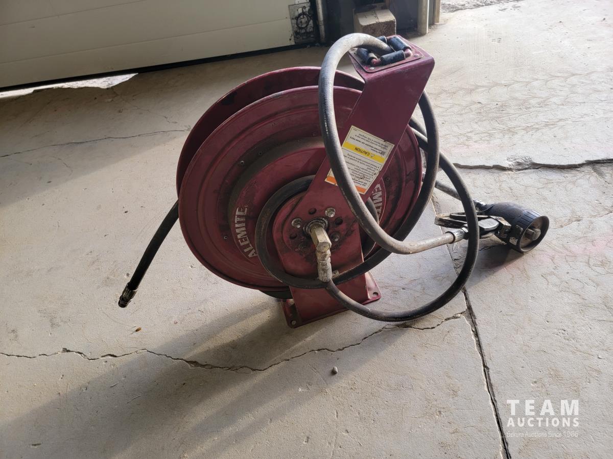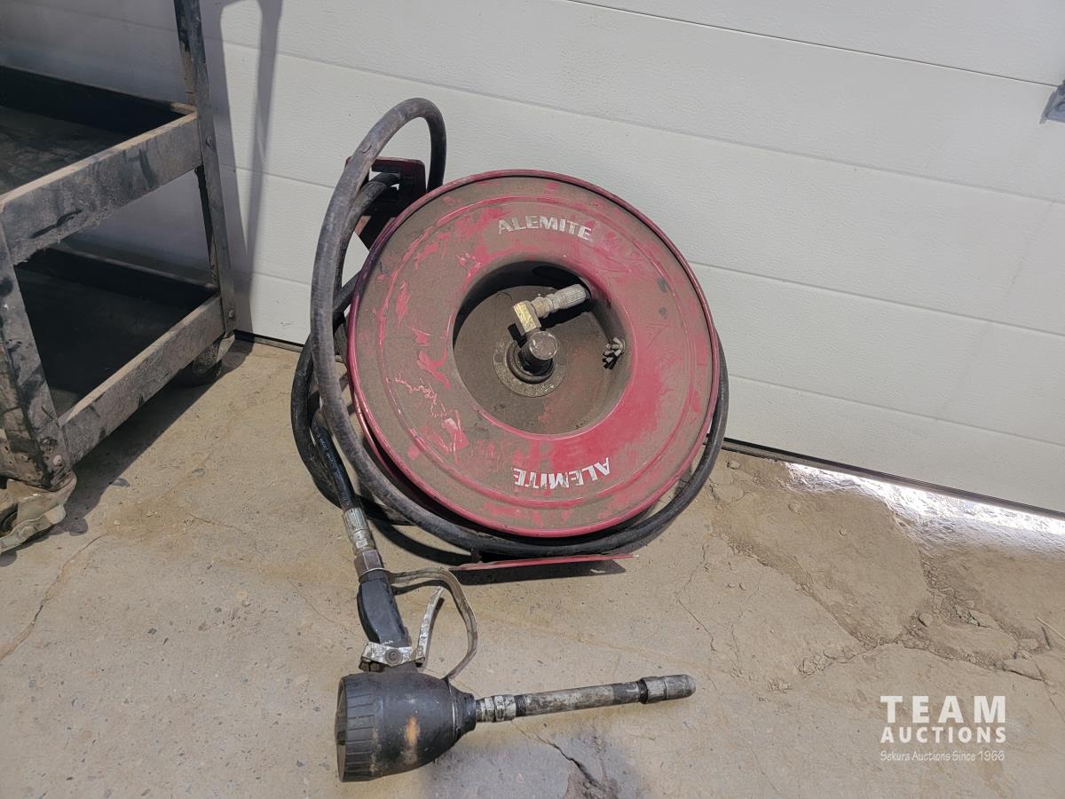 1116 Shop Cart with Drawer and Alemite Reel with Oil Dispensing Hose with Nozzle