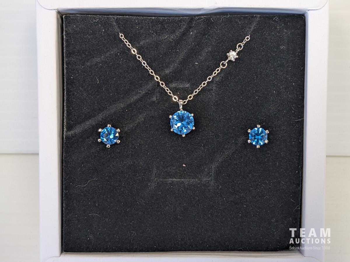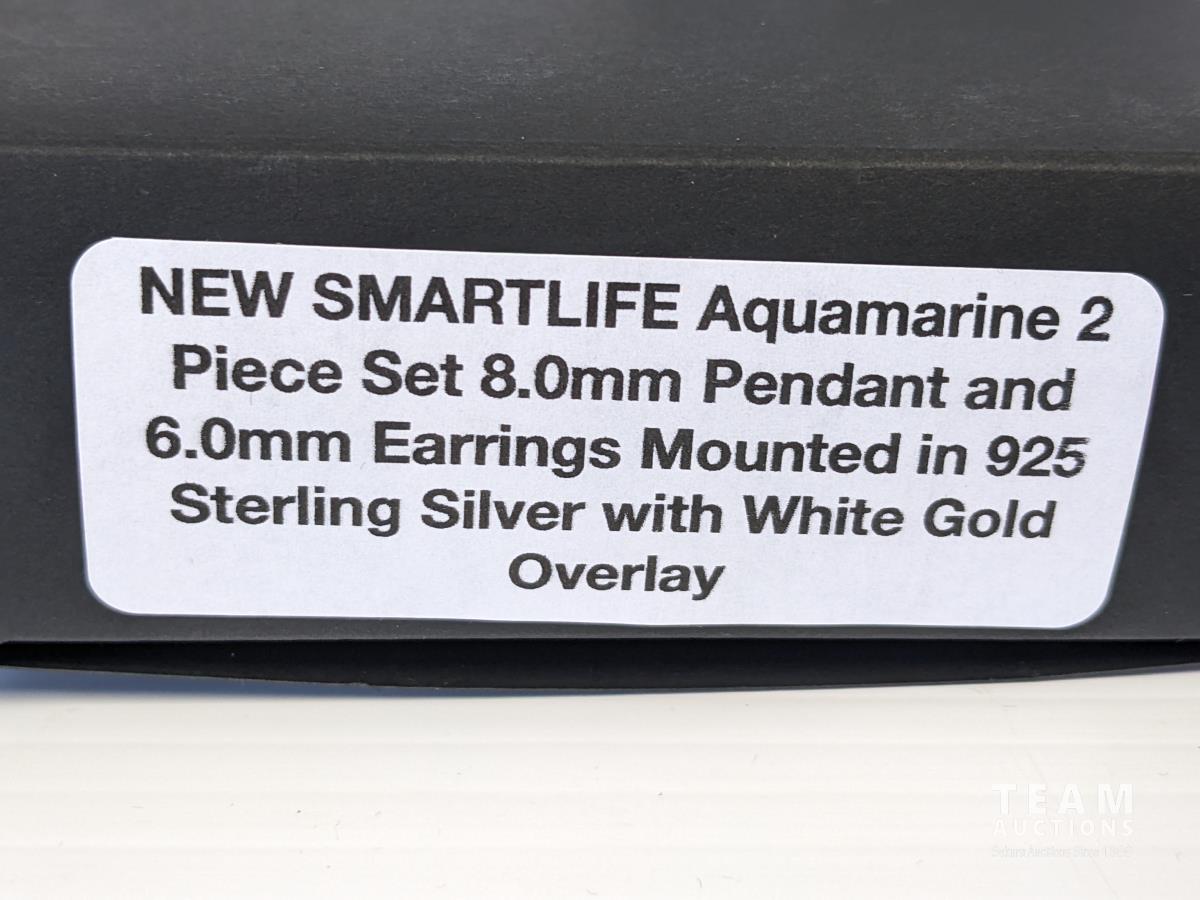 1788 SMARTLIFE Aquamarine 8.0mm Pendant and 6.0mm Earrings (Unused)
