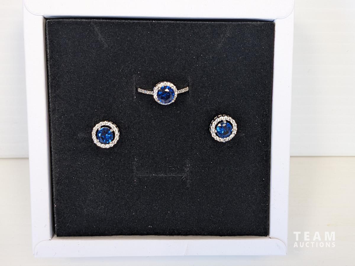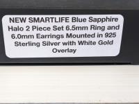 1786 SMARTLIFE Blue Sapphire Halo 6.5mm Ring and 6.0mm Earrings (Unused)