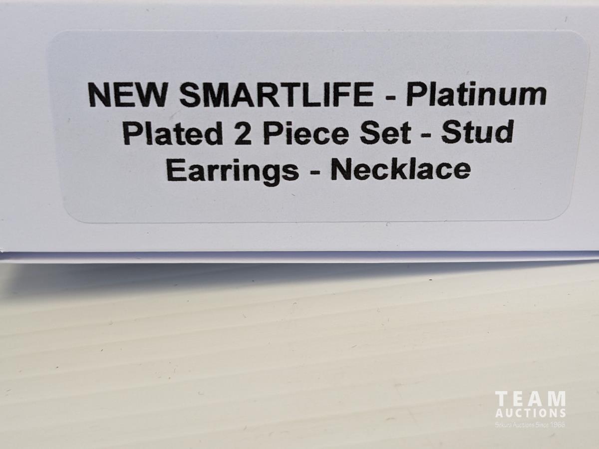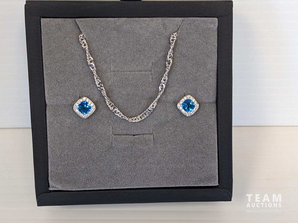 1781 SMARTLIFE Platinum Plated Necklace and Aquamarine Stud Earrings (Unused)