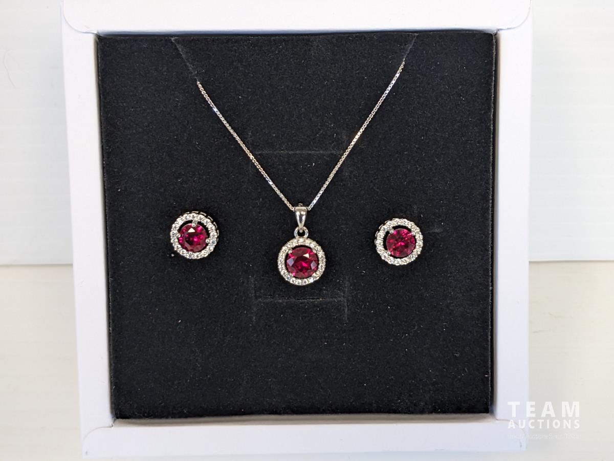 1785 SMARTLIFE Red Ruby Halo 6.5mm Pendant and 6.0mm Earrings (Unused)