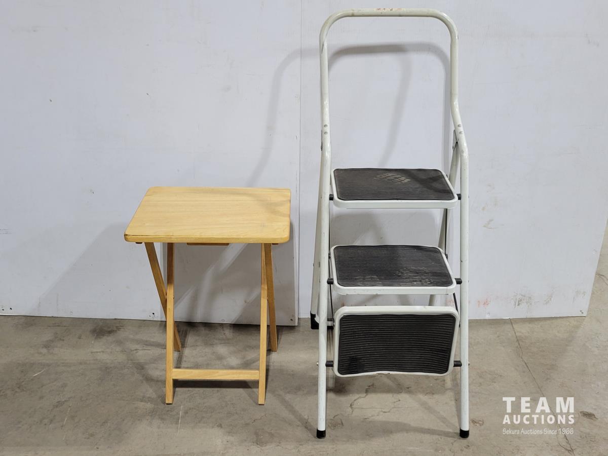 1185 Wheeled Bar Cabinet, TV Tray and 3 Step Ladder