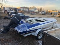 Mercury 150 outboard motor, hand winch, trailer jack, paddles