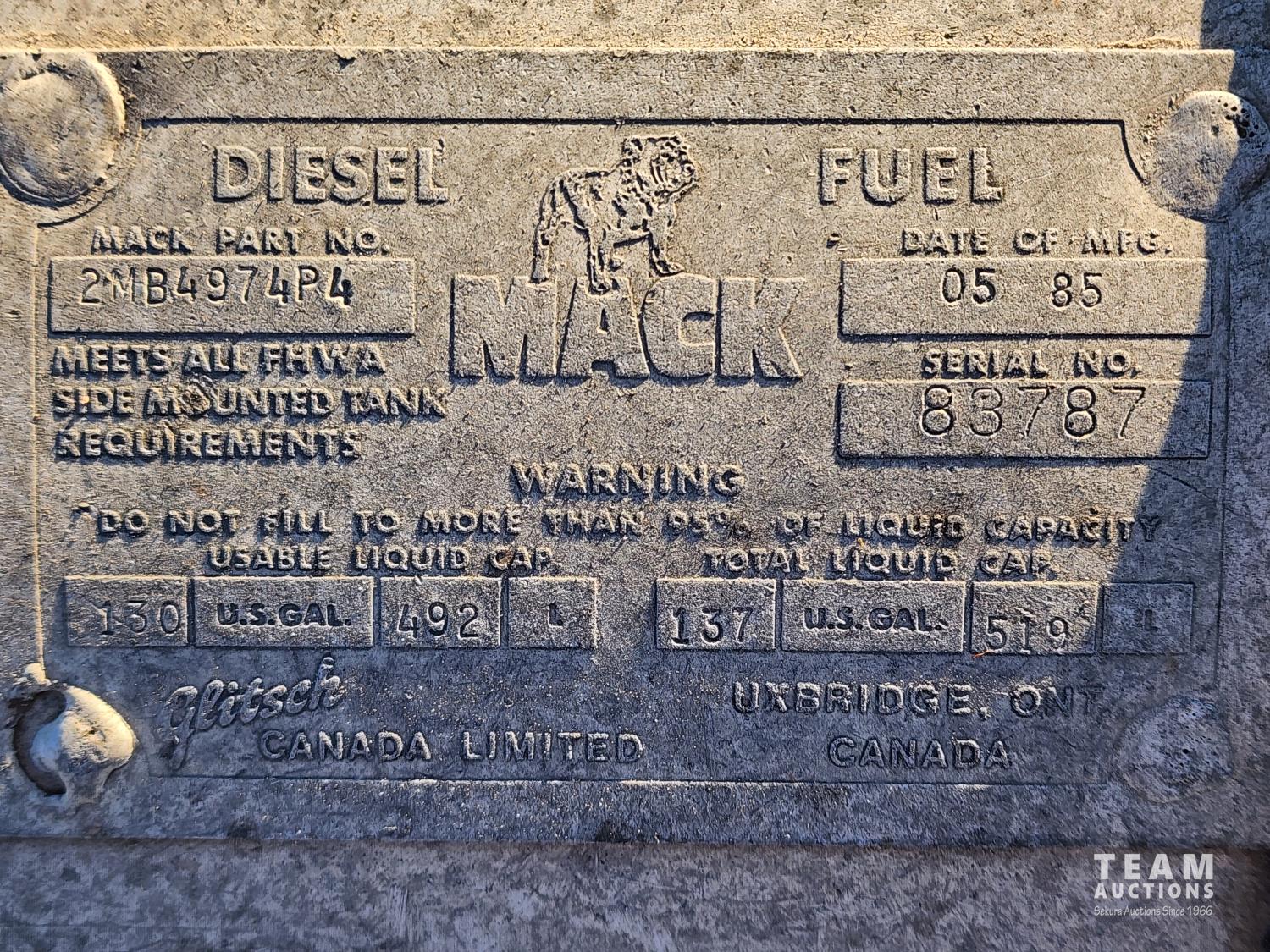 51 1985 Mack 130 Gallon Diesel Fuel Tank