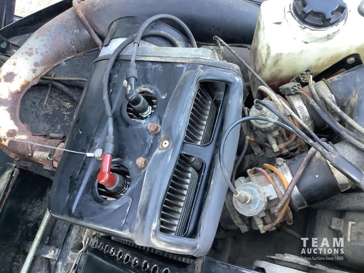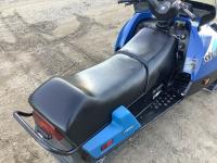This was the first model ski doo built with the Stratos rear slide suspension and inboard tower coil spring ski suspension, electric start always was kept inside. The engine only runs on one cylinder. Inside clutch side piston has no compression, needs new battery. We boosted it and it fired up one cylinder. Clean looking sled.