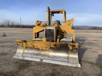 This crawler had a side boom attached to it as seen in the pictures at one time. Starts runs watch the videos.