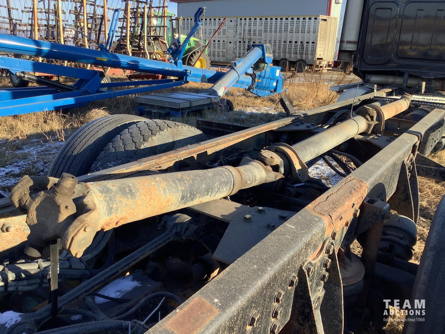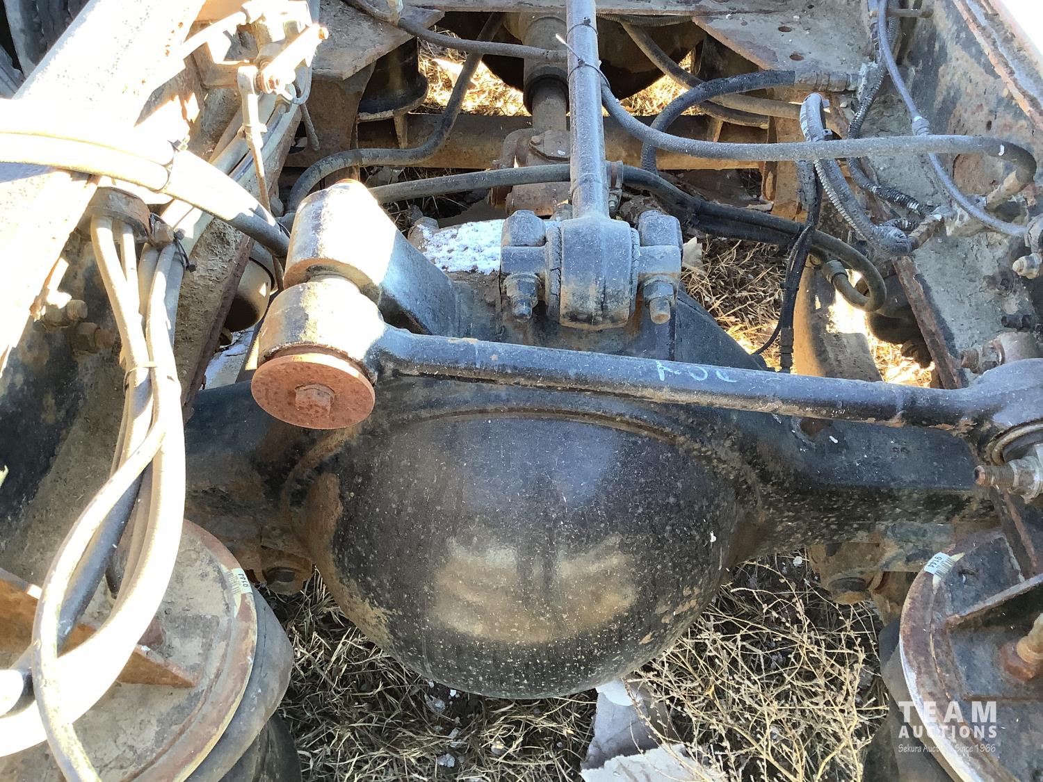 All differentials are in place. No engine or transmission. There’s a lot of good parts in this truck, it had a grain box on it and the rear hinge broke away and the box went off the truck. It’s not a roll over or was not in a accident. They used the Cat engine and transmission and installed them in a newer truck. The seller can help load unit on to a trailer if needed.