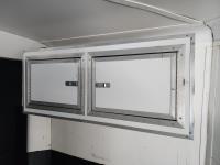 97 inch interior width, 81 inch interior height, ball hitch, side door, fold down door, torsion suspension, front fold down door, storage cupboard, tie downs, 5000 lb axles, 225/75R15 tires