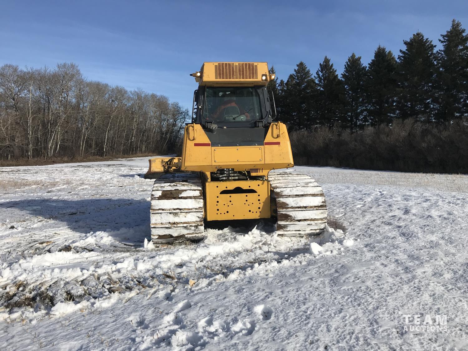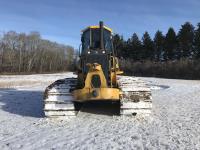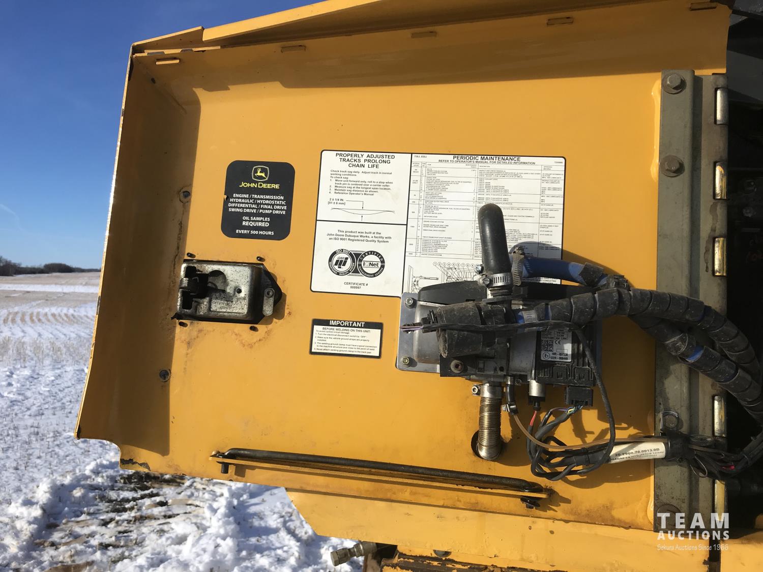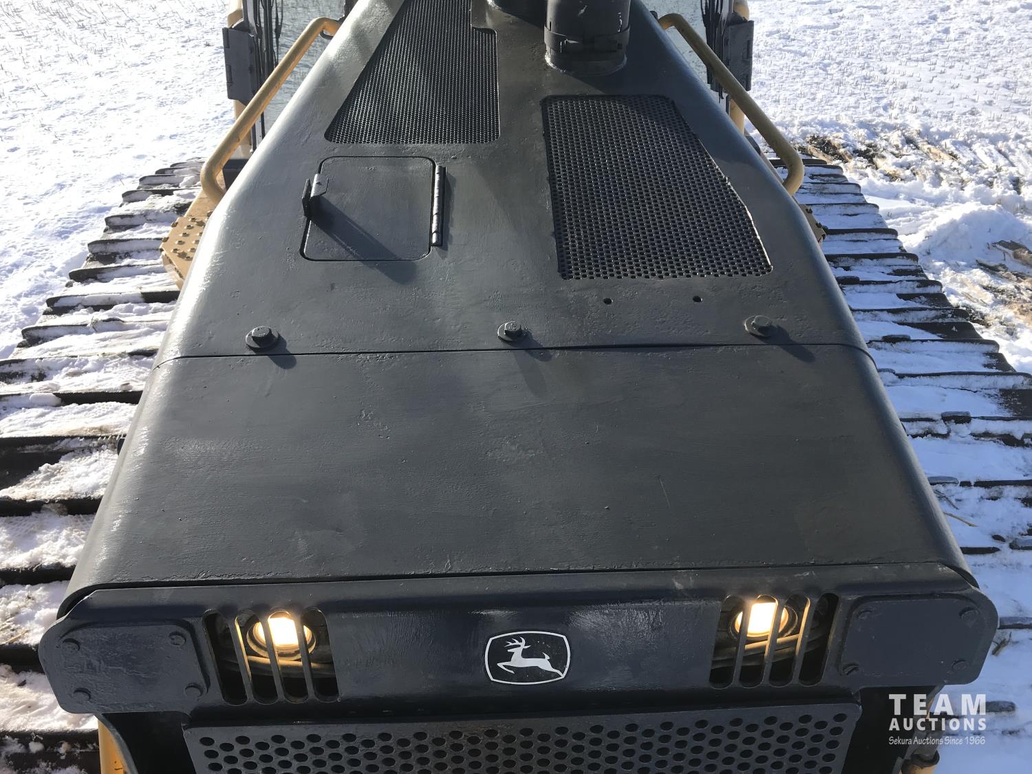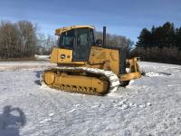 John Deere 6 cylinder diesel engine, hydro transmission, S-bar, Webasto, enclosed cab, heat, A/C, air seat, 34 inch track pads, rear triple hydraulics, 154 inch push/angle/tilt PAT blade (from JD 850), canopy and sweeps with hardware (not installed)