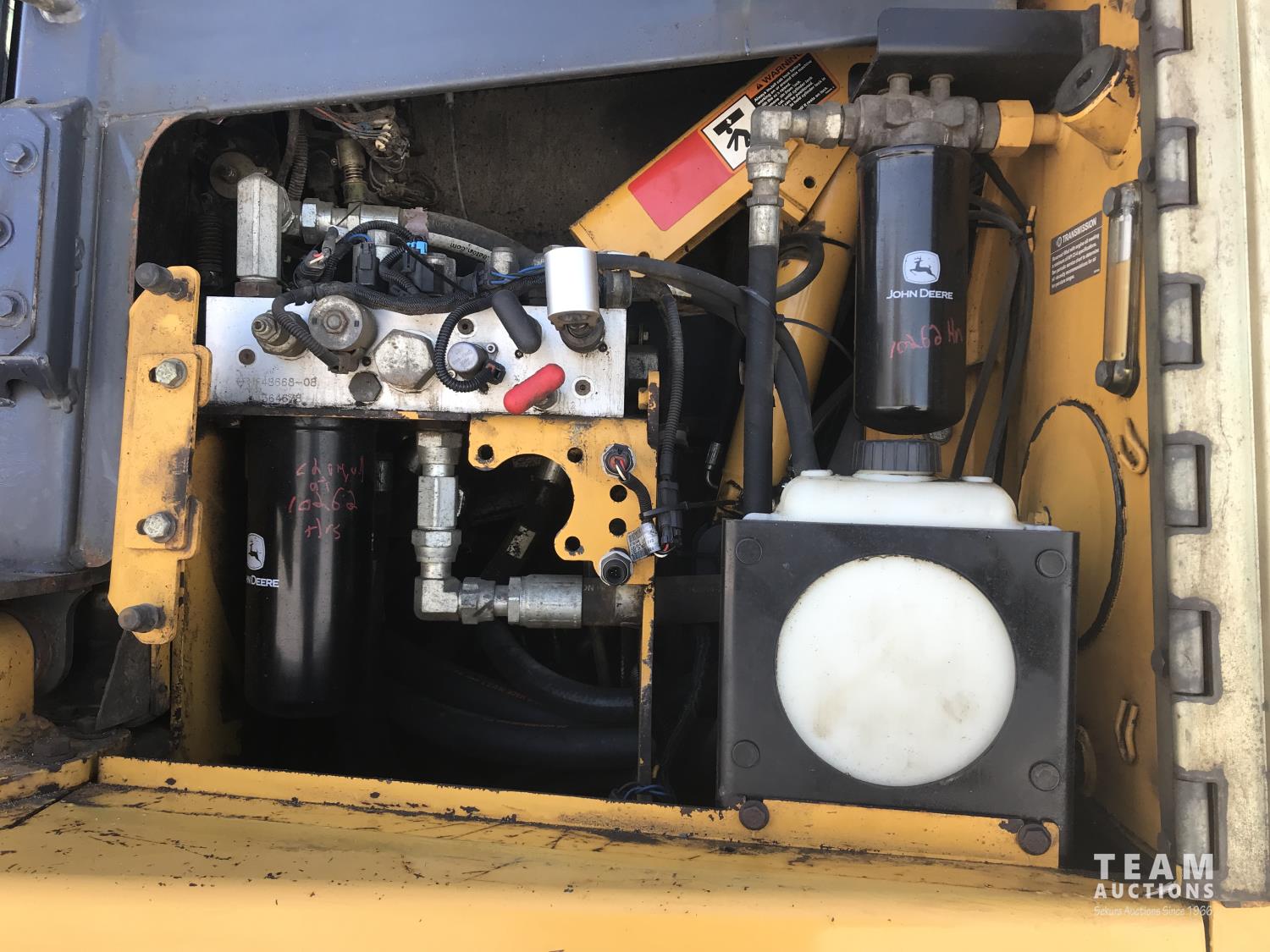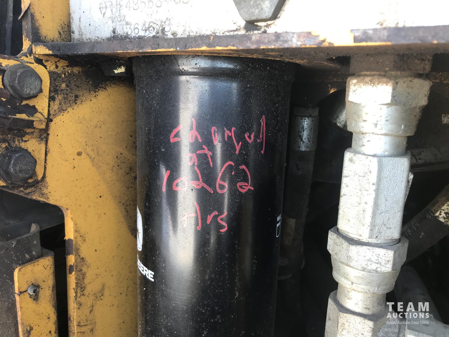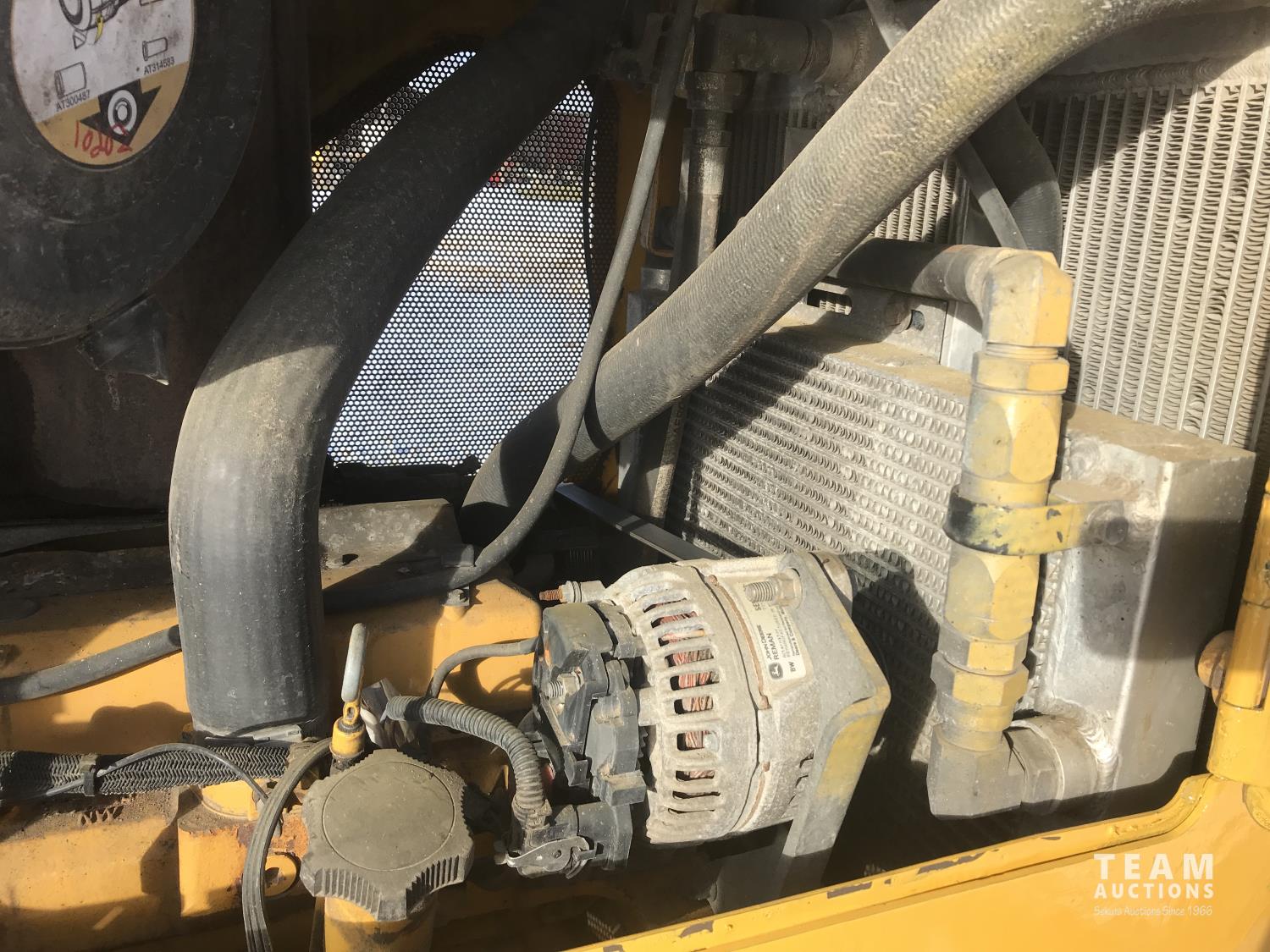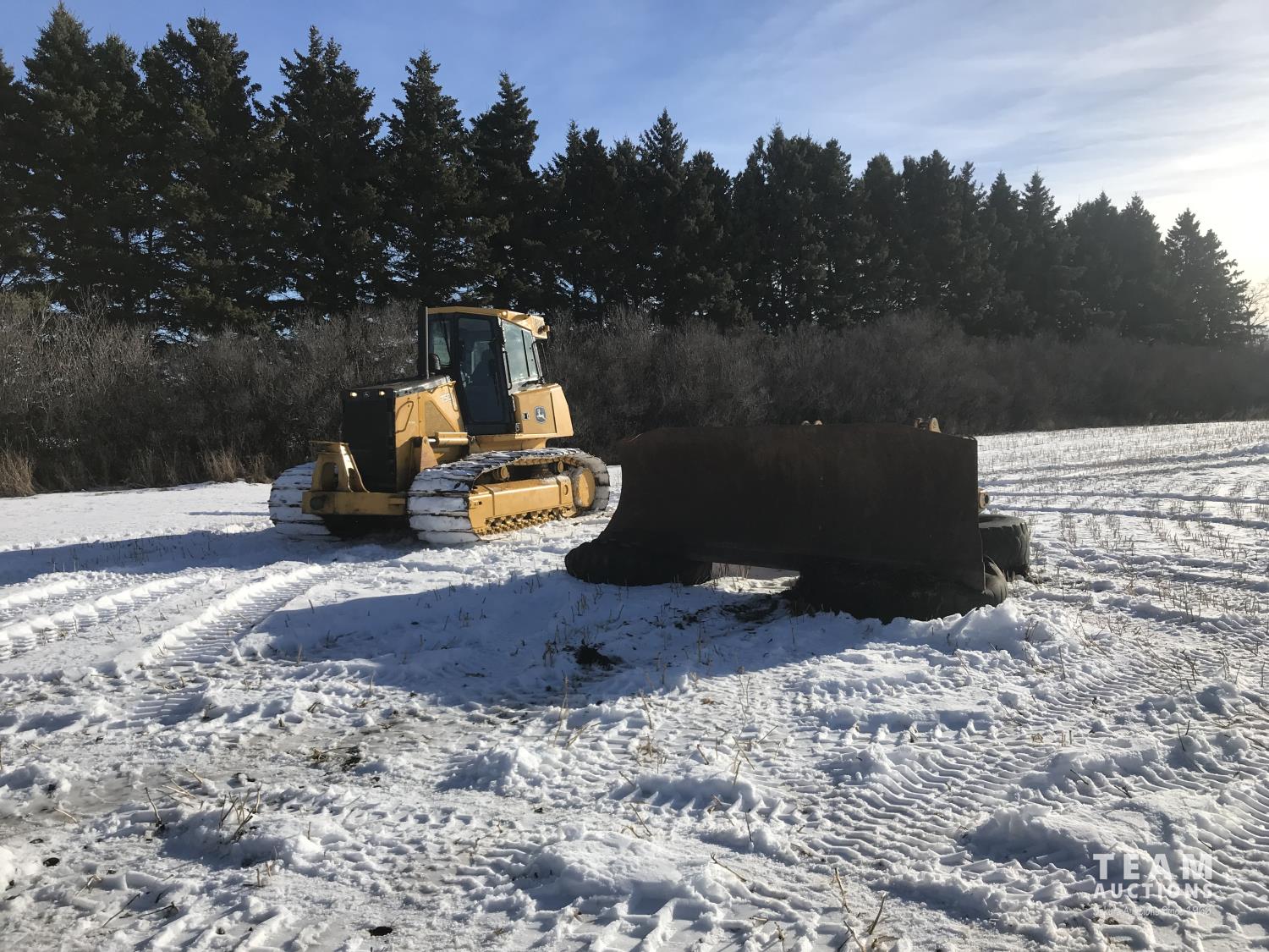 John Deere 6 cylinder diesel engine, hydro transmission, S-bar, Webasto, enclosed cab, heat, A/C, air seat, 34 inch track pads, rear triple hydraulics, 154 inch push/angle/tilt PAT blade (from JD 850), canopy and sweeps with hardware (not installed)