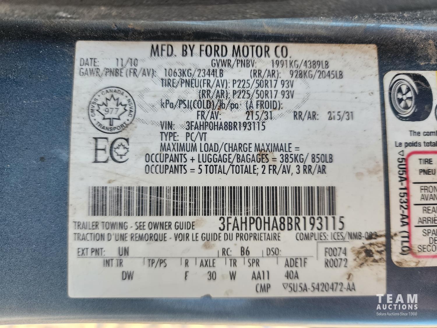 278 2011 Ford Fusion Sedan Car
