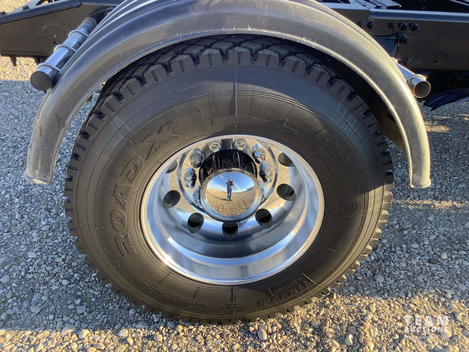 Cummins ISC 300 HP engine, Allison automatic transmission, front air assist suspension, air ride suspension, 12,000 lb front axle, 23,000 lb rear axles, diff lock, 5th wheel, trailer air valve, all aluminum wheels, 11R22.5 tires