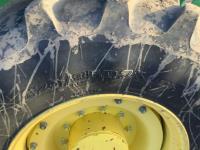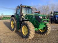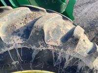 John Deere loader mounts, John Deere 6.8 L 6 cylinder 155 HP, engine, 123 PTO HP, 12 speed Power Quad partial power shift transmission, cab, left hand reverser, joystick, A/C, radio, buddy seat, grill guard, 540/1000 PTO, 3 point hitch, 3 rear hydraulic outlets, rear wheel weights, track weights, 420/85R28 front tires, 20.8R38 rear tires, front fenders