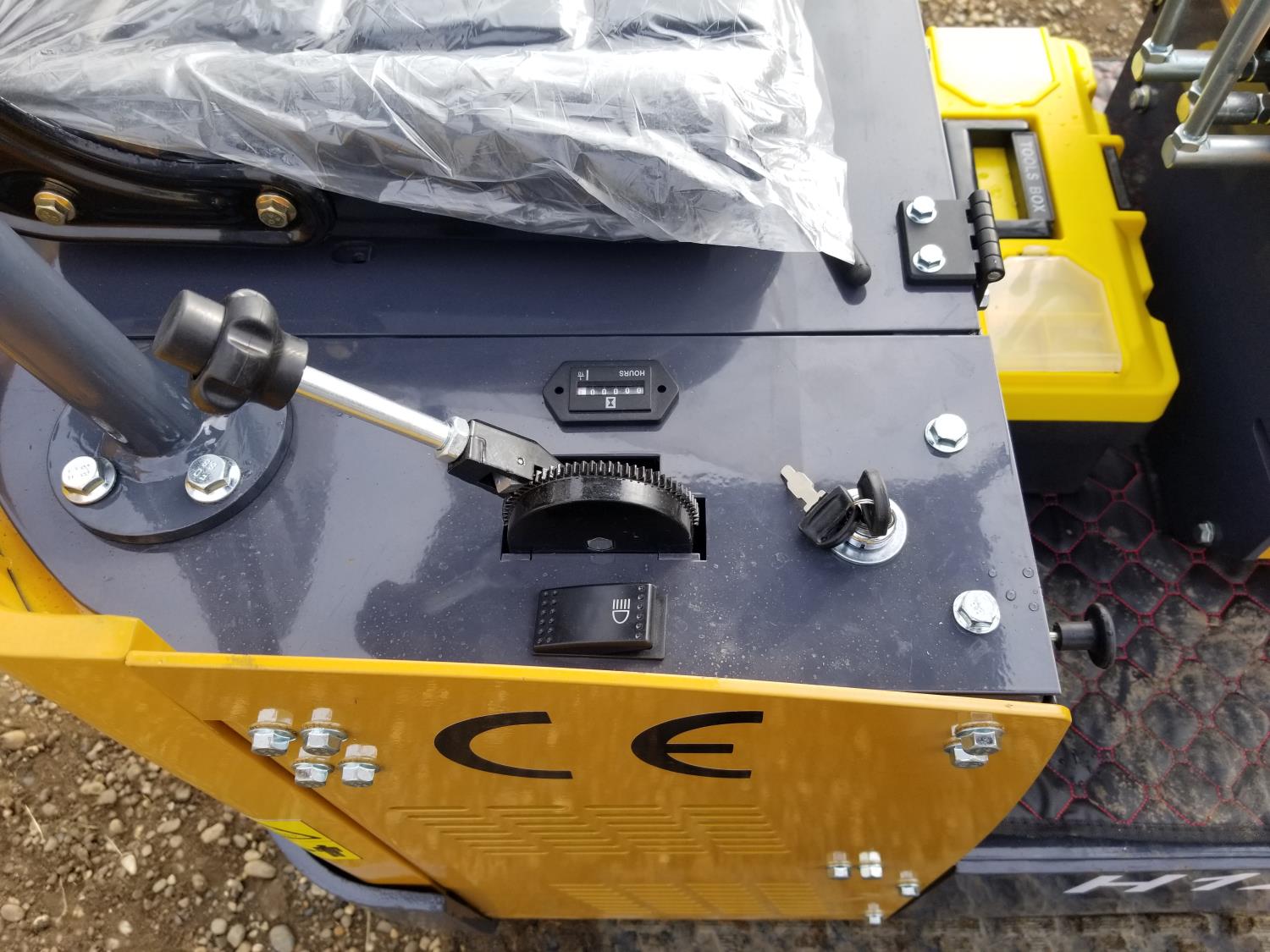 Open station, pilot controls, Briggs & Stratton 13.5 HP gas engine, LED work lights, 15 inch Dig bucket, manual coupler, manual thumb, 1 auxiliary hydraulics, 2 Ft 7 inch stick, swing boom, backfill blade, 7 inch rubber tracks